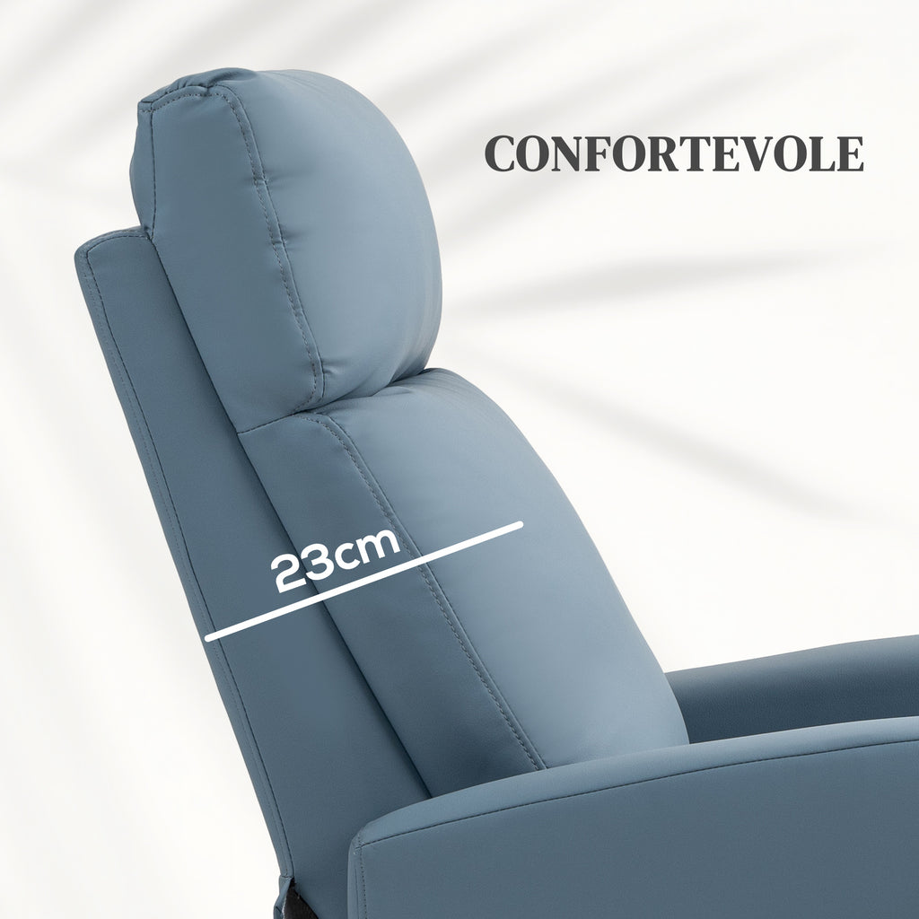 - COMFORT GARANTITO: La seduta della poltrona reclinabile è imbottita in gommapiuma e rivestita in pelle PU azzurro, in modo da offrirti il massimo comfort e un complemento d'arredo di qualità