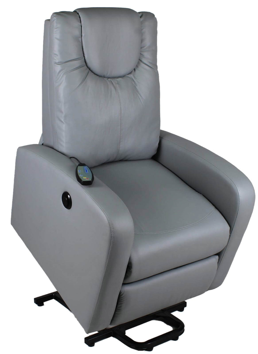 La position avec les jambes surélevées, la position complètement inclinée en position lit et la position debout peuvent être obtenues en appuyant sur le bouton approprié situé sur le côté droit du fauteuil. L'effet vibro-massant peut être facilement activé à l'aide de la télécommande en choisissant parmi 20 combinaisons de massage en agissant sur la zone lombaire et cervicale, en modifiant l'intensité à votre convenance.