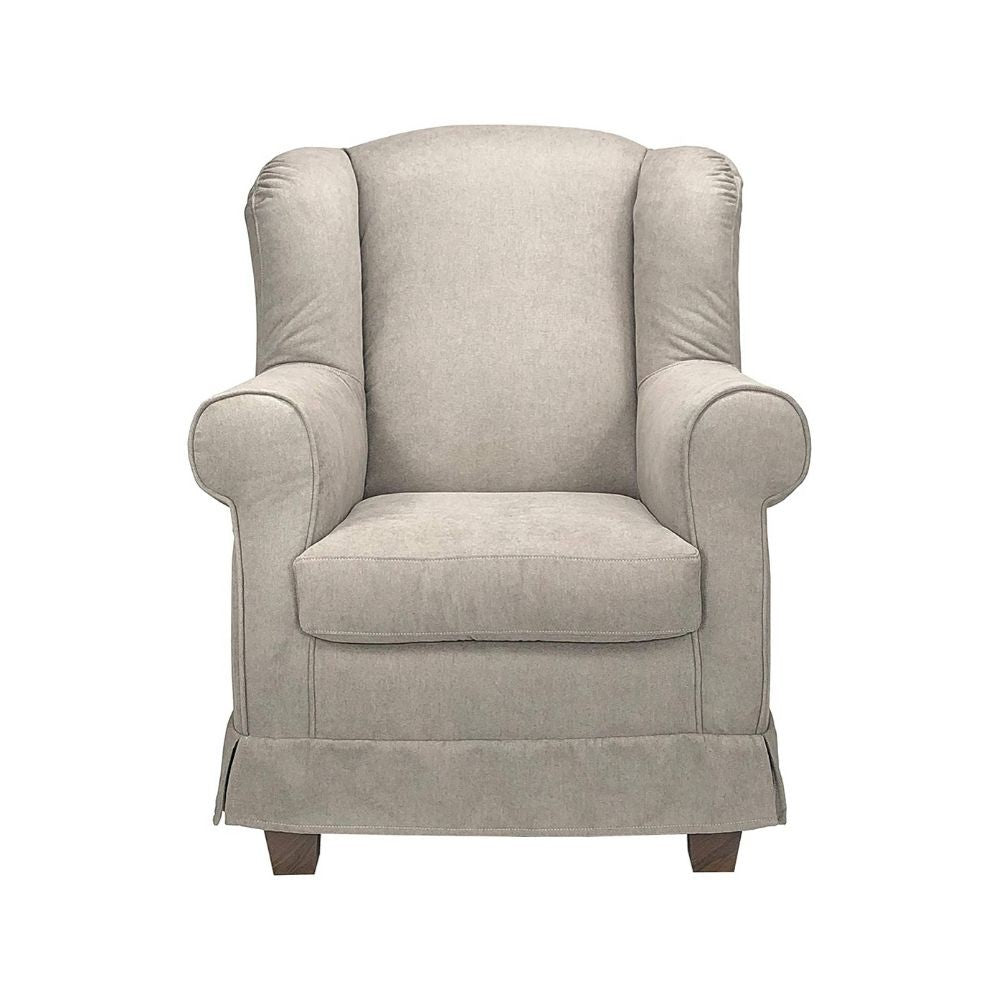 Poltrona in tessuto beige Bergere. La struttura è in legno massello di abete e l’imbottitura è in poliuretano espanso. Prodotto sfoderabile e lavabile.