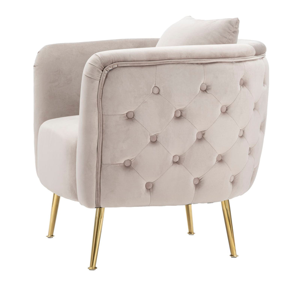 Fauteuil en velours et métal doré avec coussin. Des assises majestueuses inspirées des loges des grandes divas hollywoodiennes. Le métal doré et le velours se marient dans un style unique. Idéal à placer dans la chambre ou dans le salon pour se sentir comme une star.