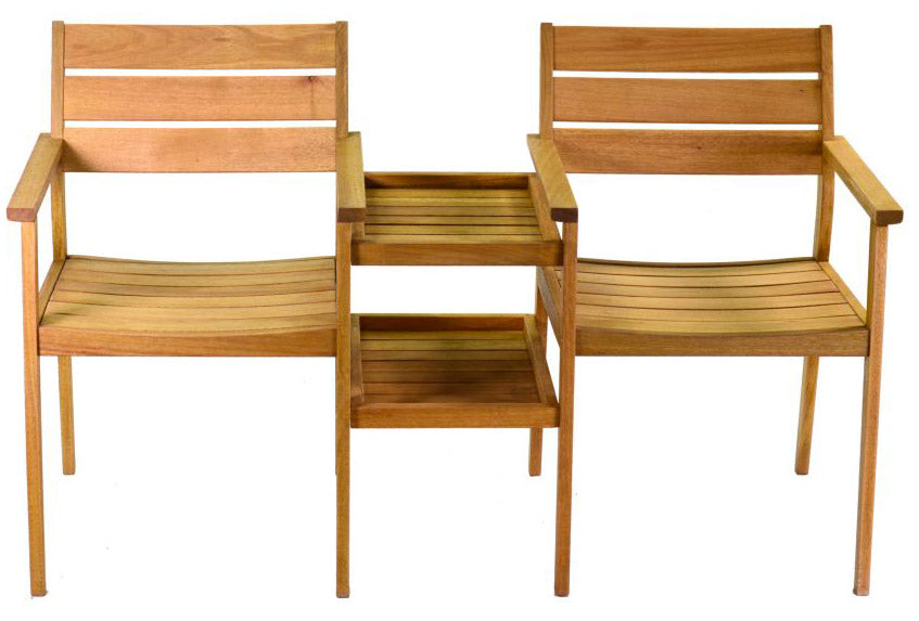 Fauteuil de Jardin 2 places avec table centrale 2 étagères en Bois d'Eucalyptus.