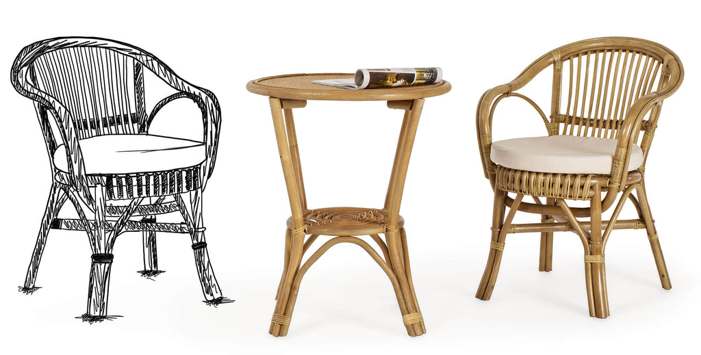 Fauteuil de jardin 57x61x80 cm en rotin avec coussin Barina