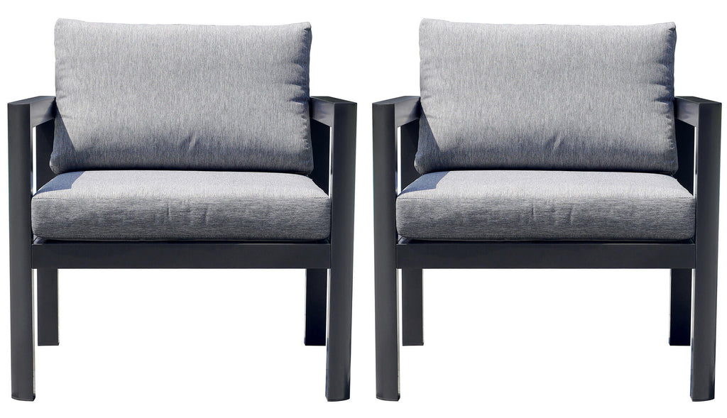 Fauteuil de jardin 70x75x60 cm en aluminium gris avec coussins gris