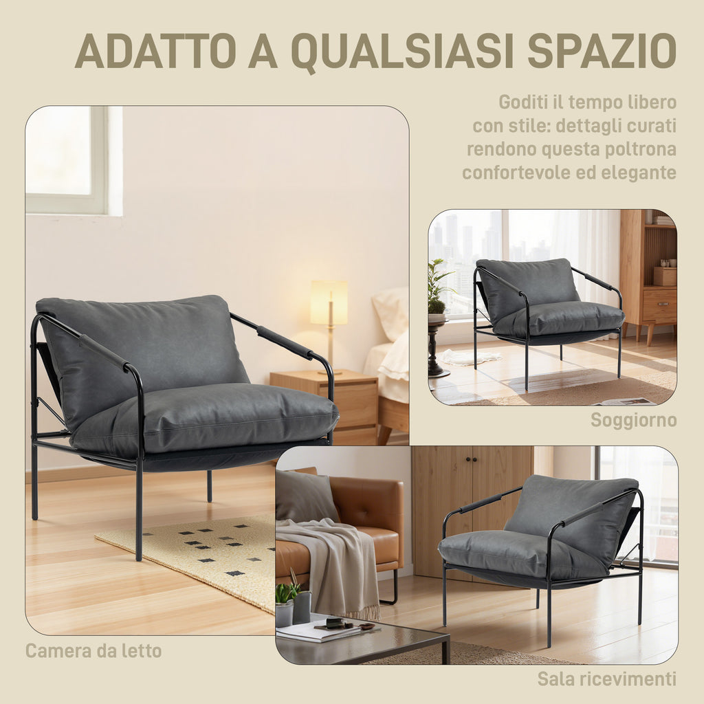Poltrona da Salotto 74,5x75x77 cm con Cuscini Spessi in Pelle PU e Telaio in Metallo Grigio Carbone