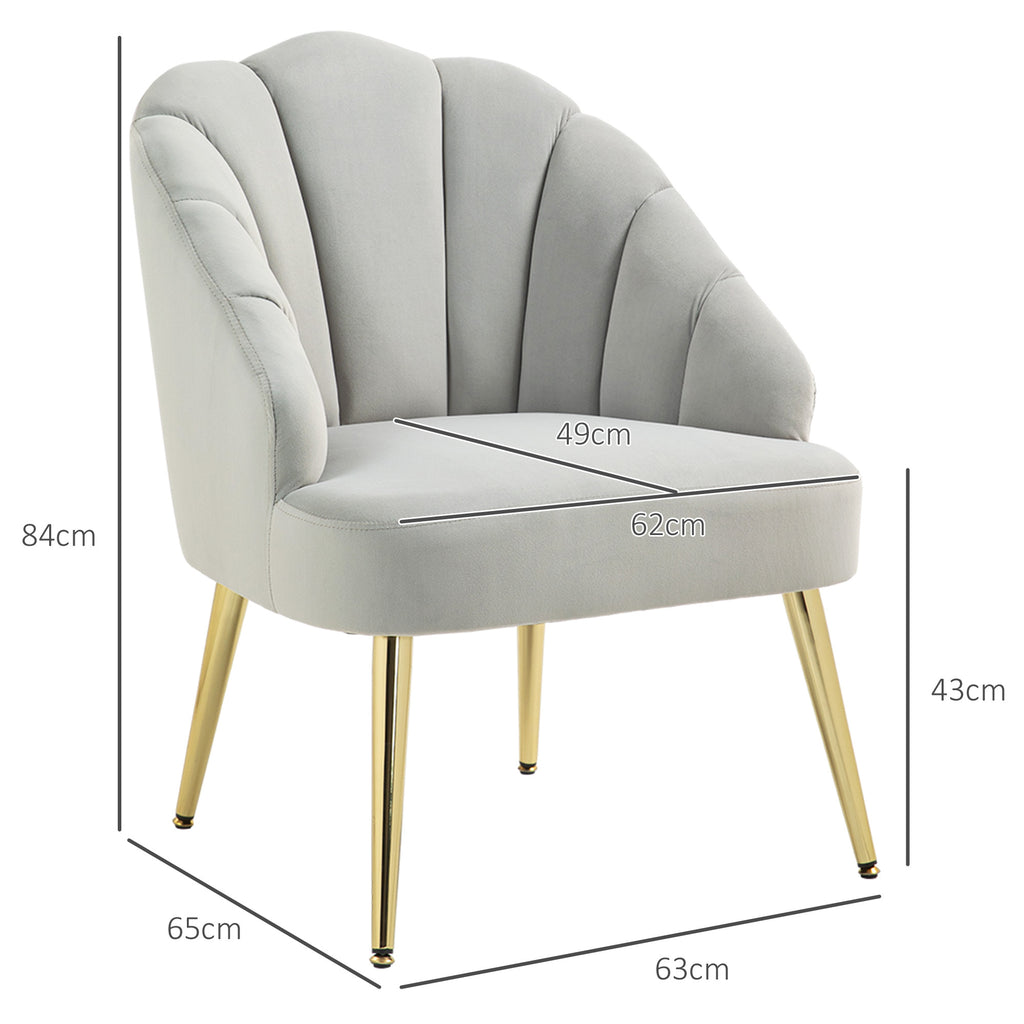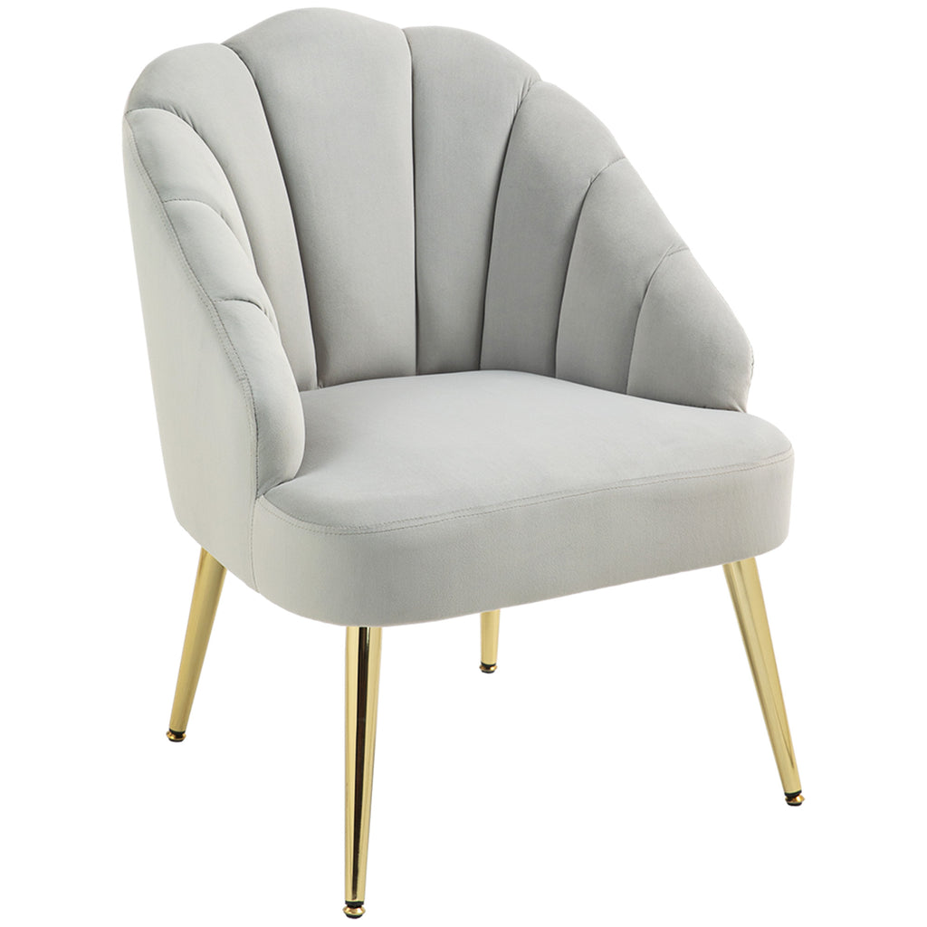 - STILE ART DECO: Lo schienale della poltroncina da camera a forma di conchiglia unito alle gambe color oro crea un effetto glamour, per portare un tocco di novità ai tuoi spazi