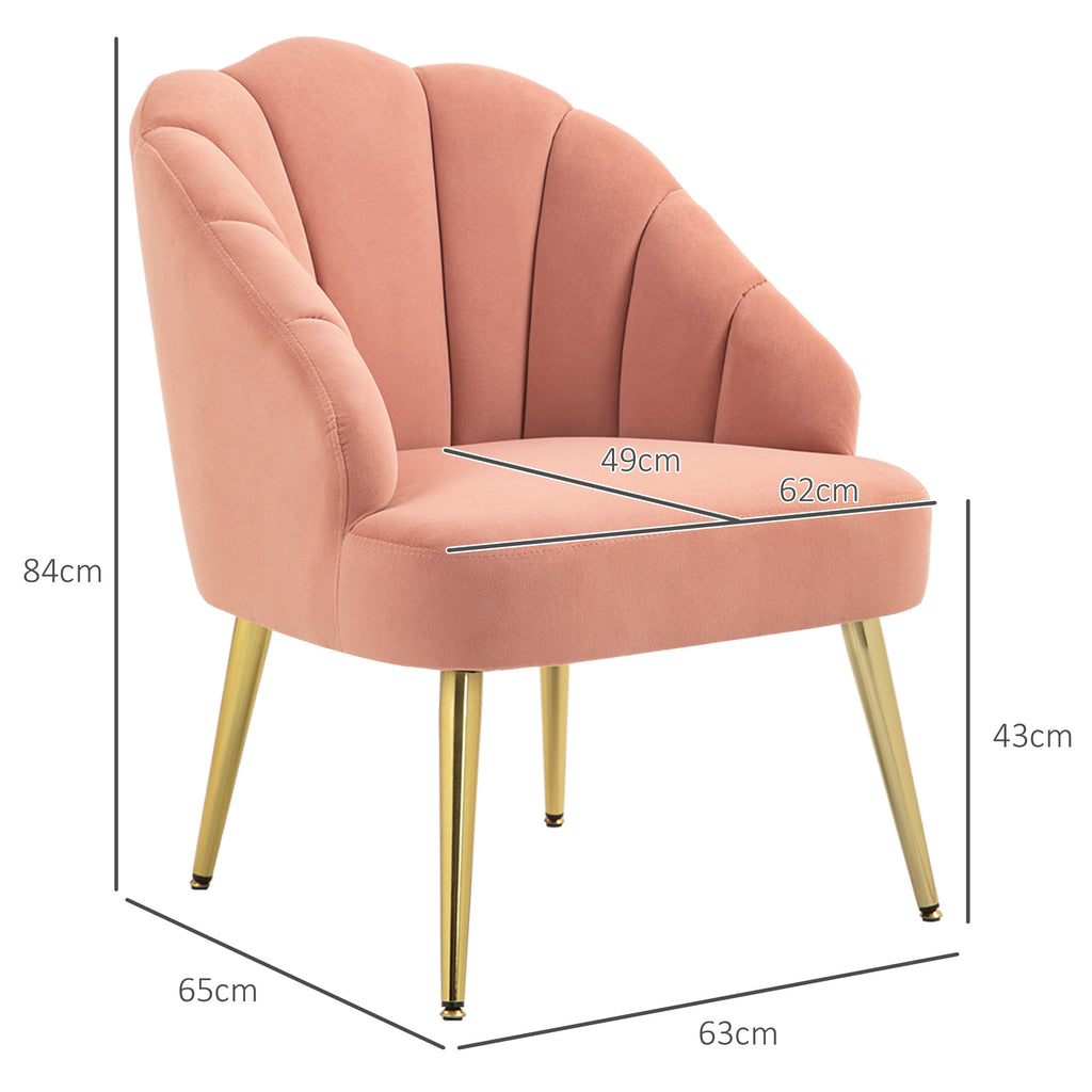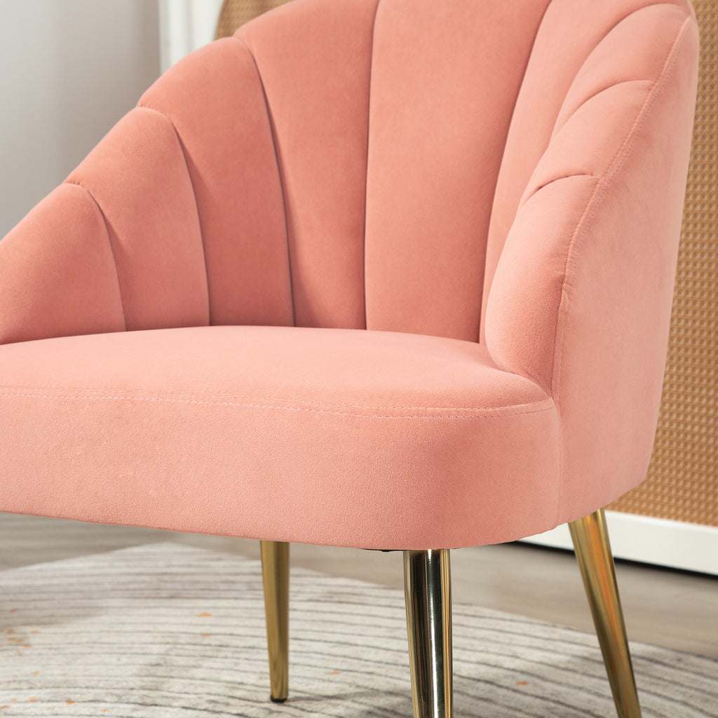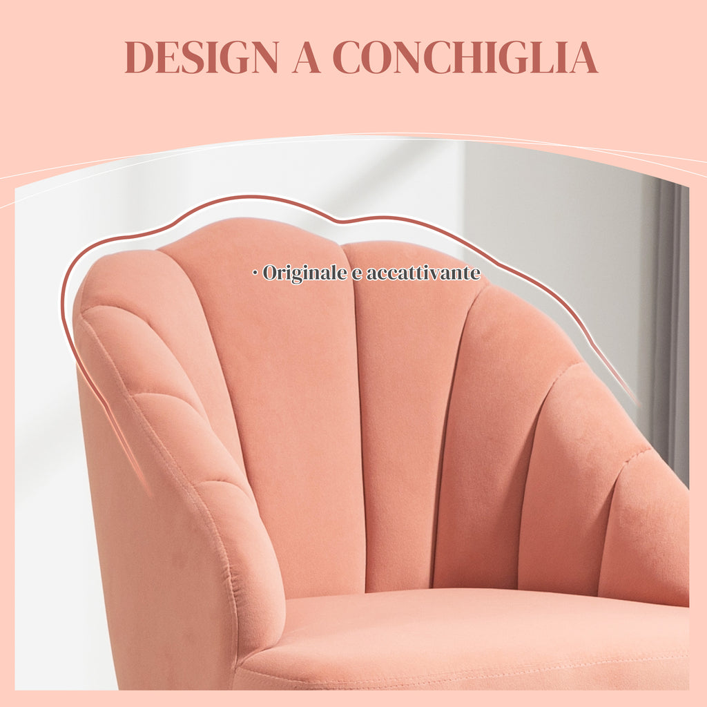 Poltrona da Salotto Imbottita a Conchiglia Stile Art Decò in Velluto Rosa