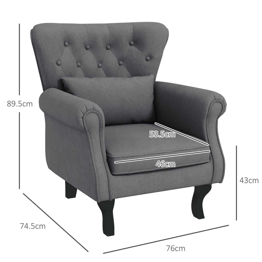 Poltrona da Salotto Vintage in Tessuto con Cuscino Lombare e Imbottitura 76x74,5x89,5 cm Grigio Scuro