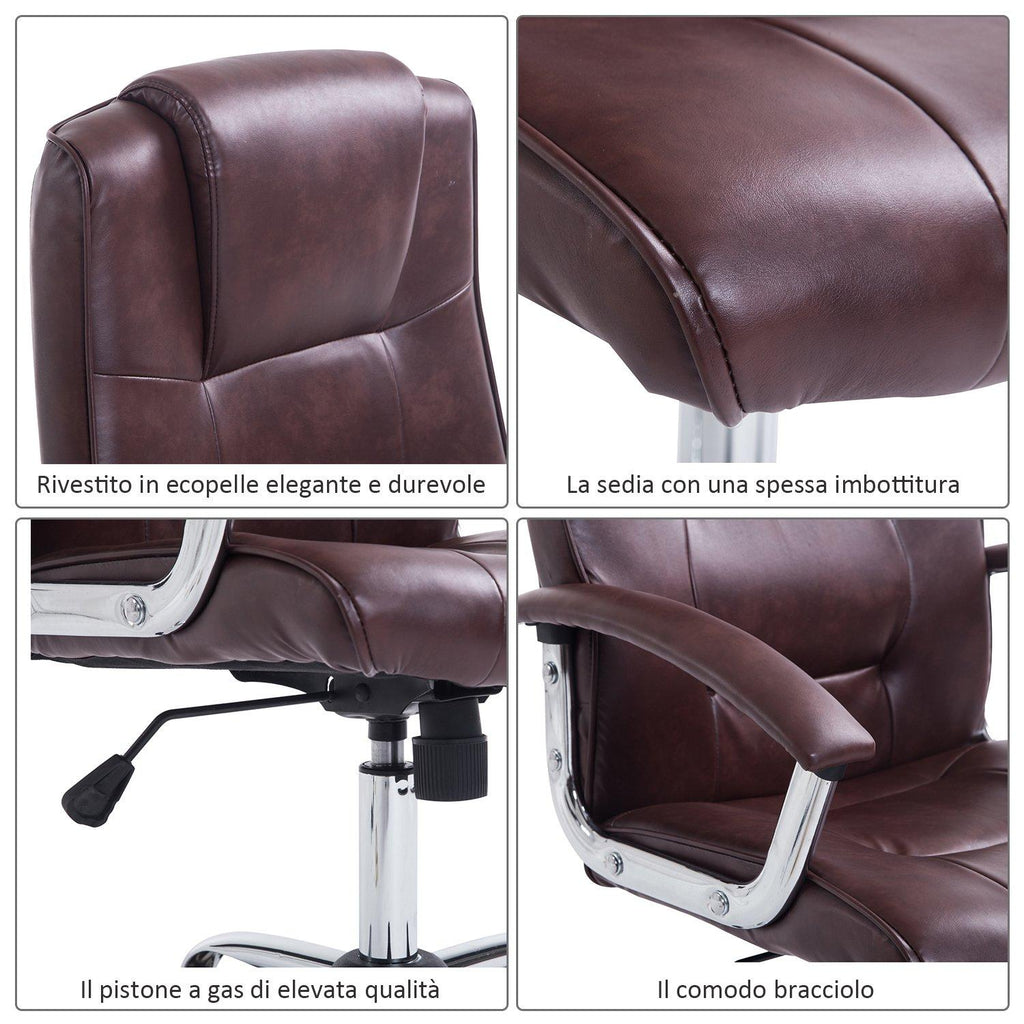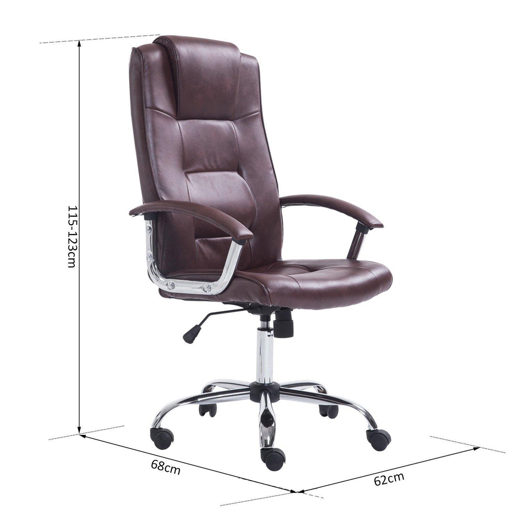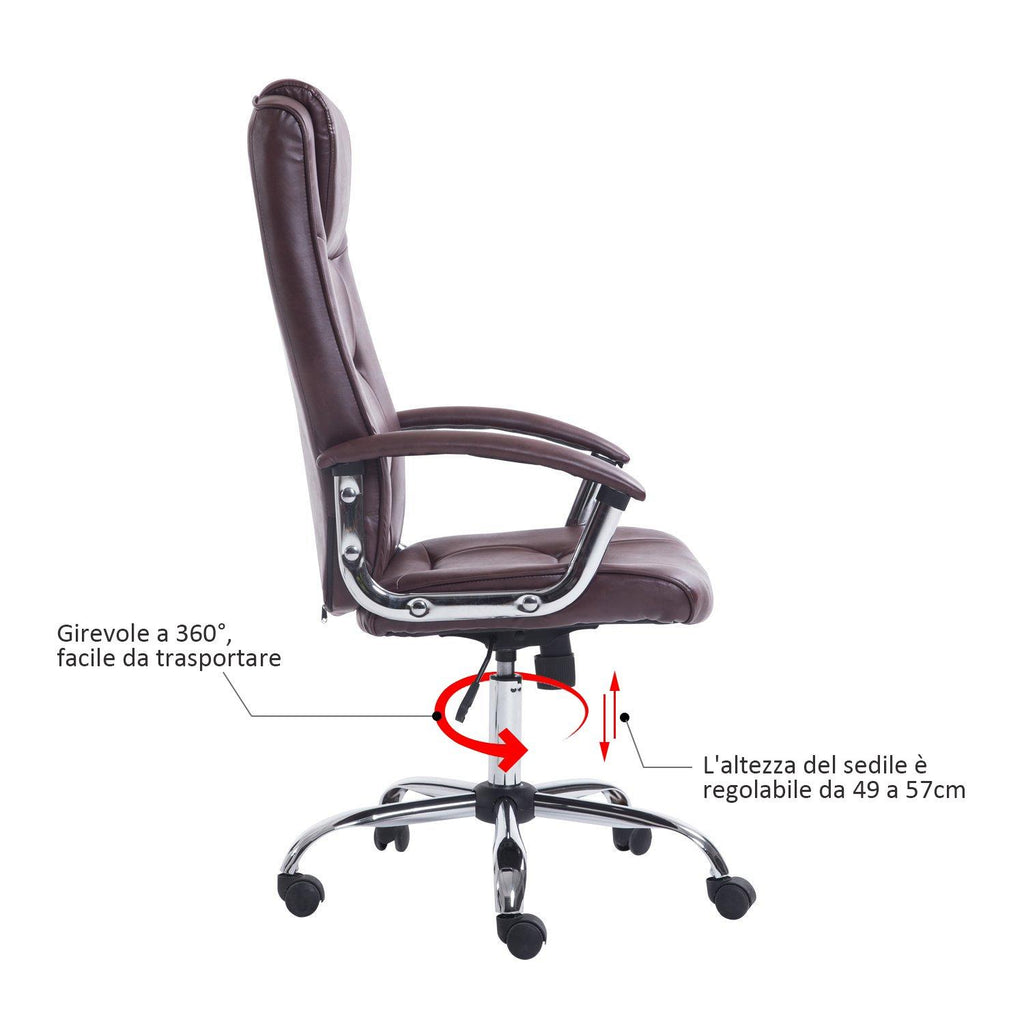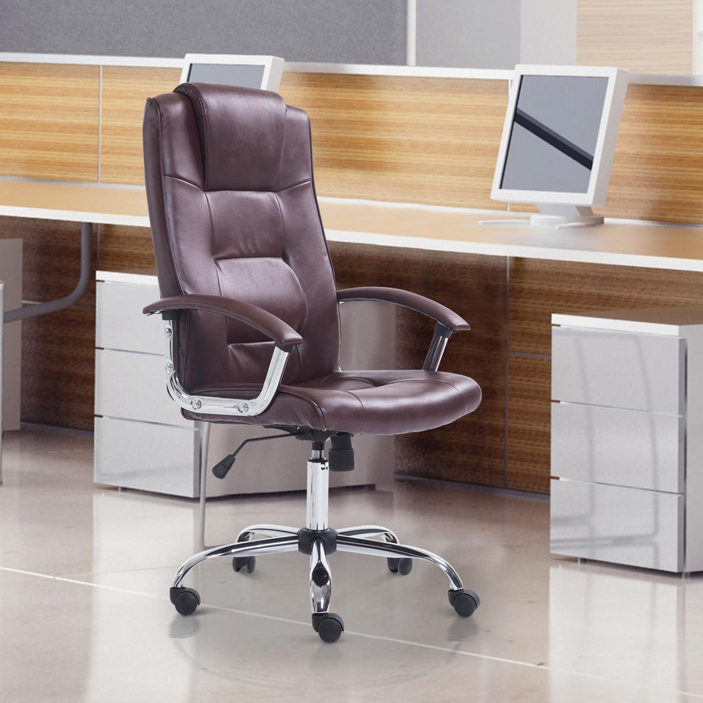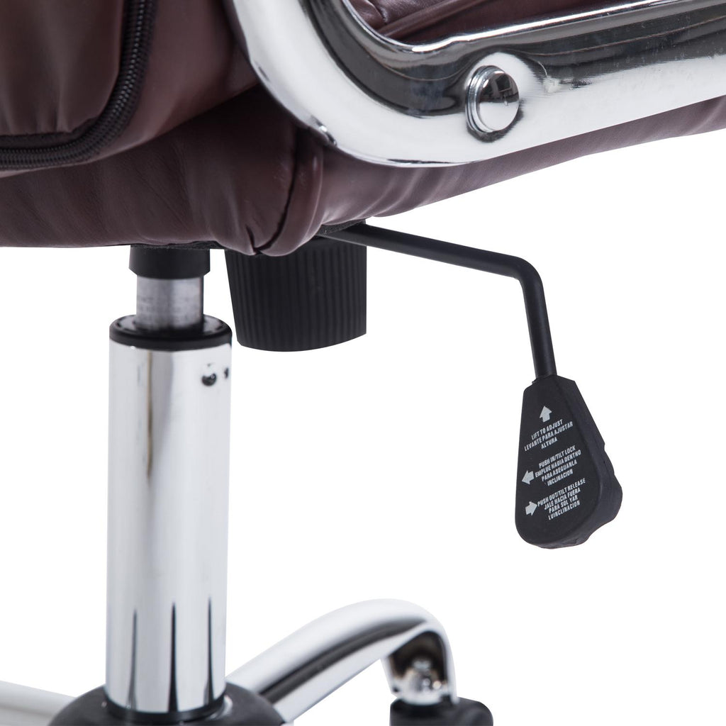 Cette chaise de bureau est faite de similicuir et de rembourrage en mousse de la plus haute qualité et d'une base en métal avec roulettes pivotantes.