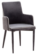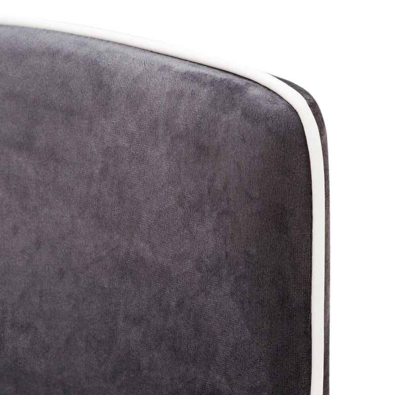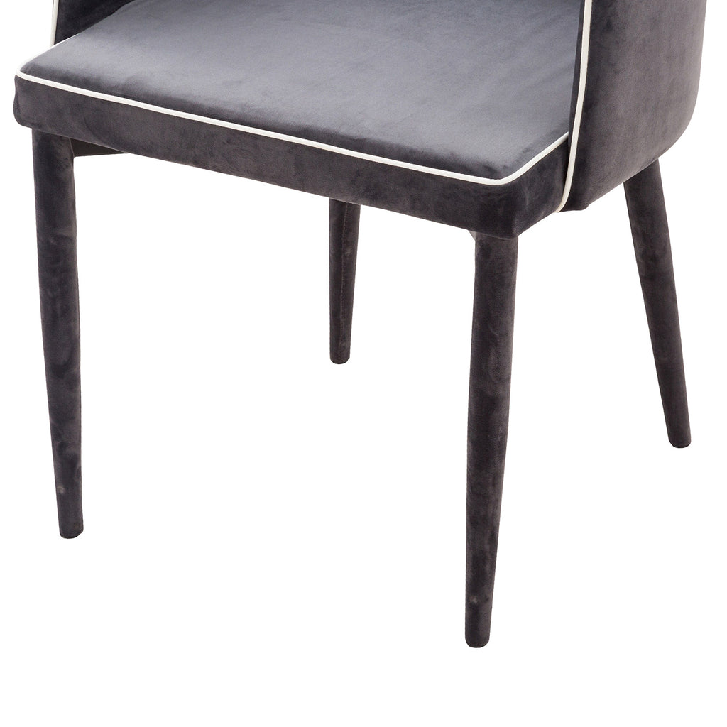 Fauteuil PLANA PLUS avec structure en tube métallique, assise et dossier avec rembourrage en polyuréthane et revêtement en tissu velouté avec cordon de profilage en similicuir blanc.