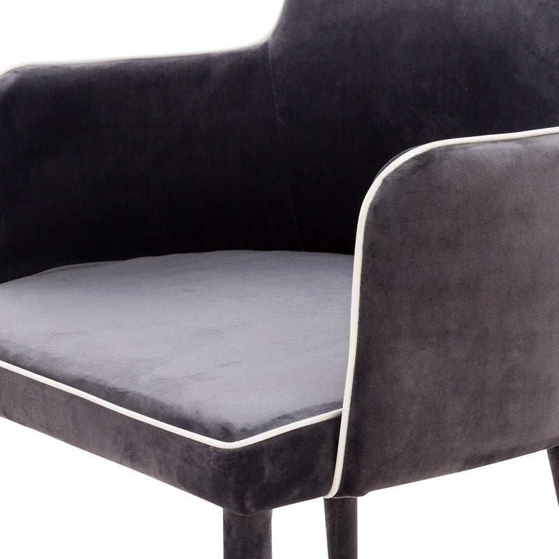 - Fauteuil rembourré de couleur frêne avec cordon de profilage blanc Dimensions (LxlxH) : 56,5x53x87 cm