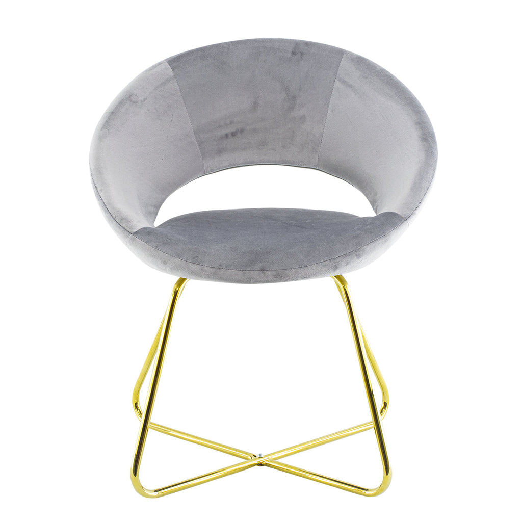 Le siège design en demi-cercle a une structure en fer avec un rembourrage en mousse, la robustesse et le confort sont absolument garantis. Greta est recouverte d'un magnifique tissu effet velours, ce qui la rend très douce au toucher et très chaude. Les pieds en fer lui confèrent une grande stabilité, la laque dorée et le croisement d'étoiles en font un élément rétro supplémentaire qui fait de notre Greta une diva de l'ameublement.
