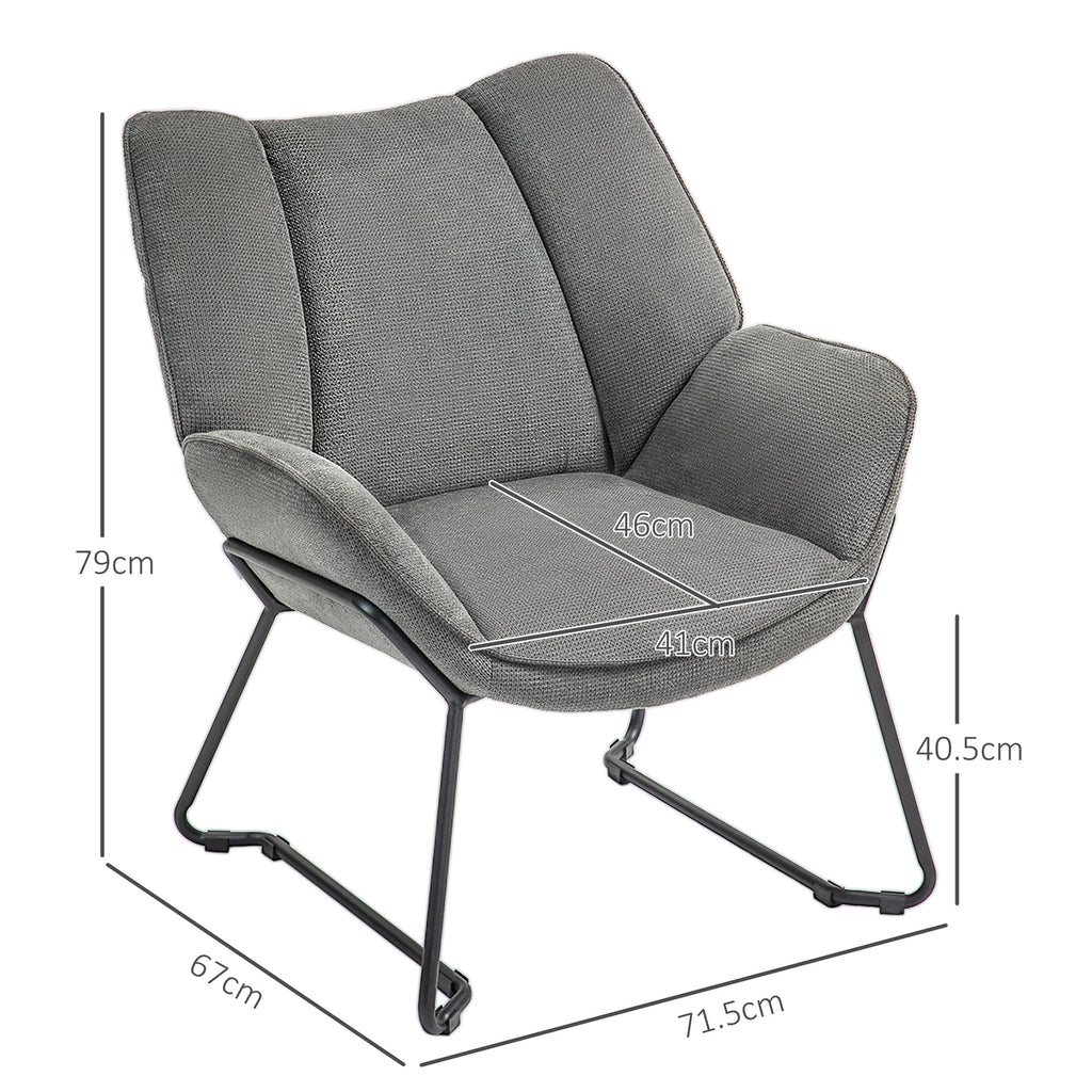 Poltrona Imbottita 71,5x67x79 cm in Tessuto Effetto Lino Grigio