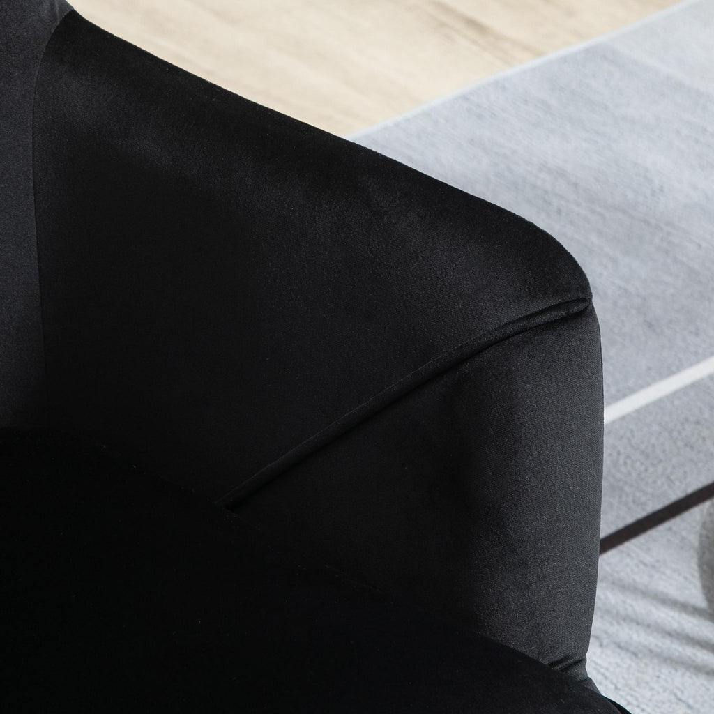 Fauteuil rembourré 74x68x77 cm en tissu effet velours noir