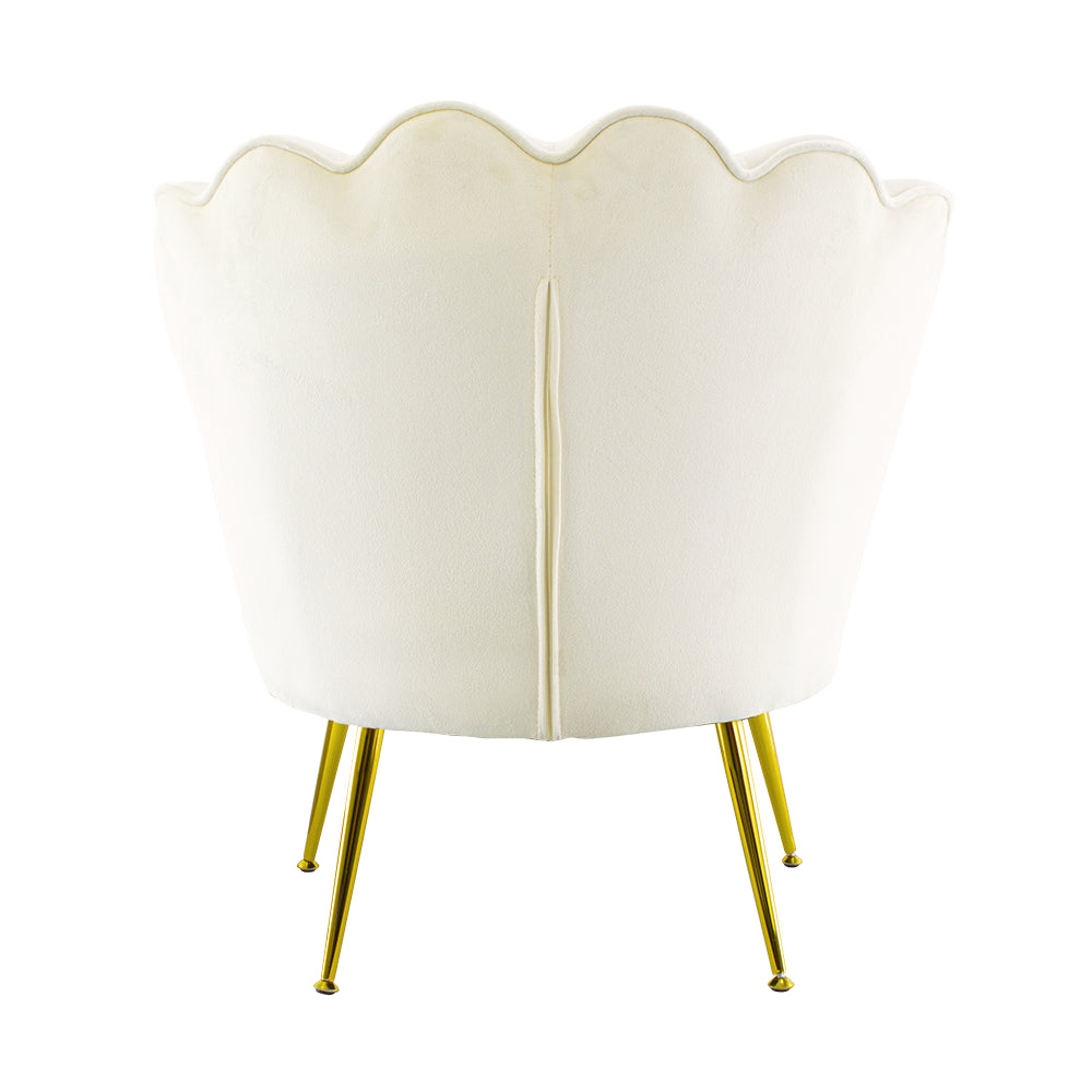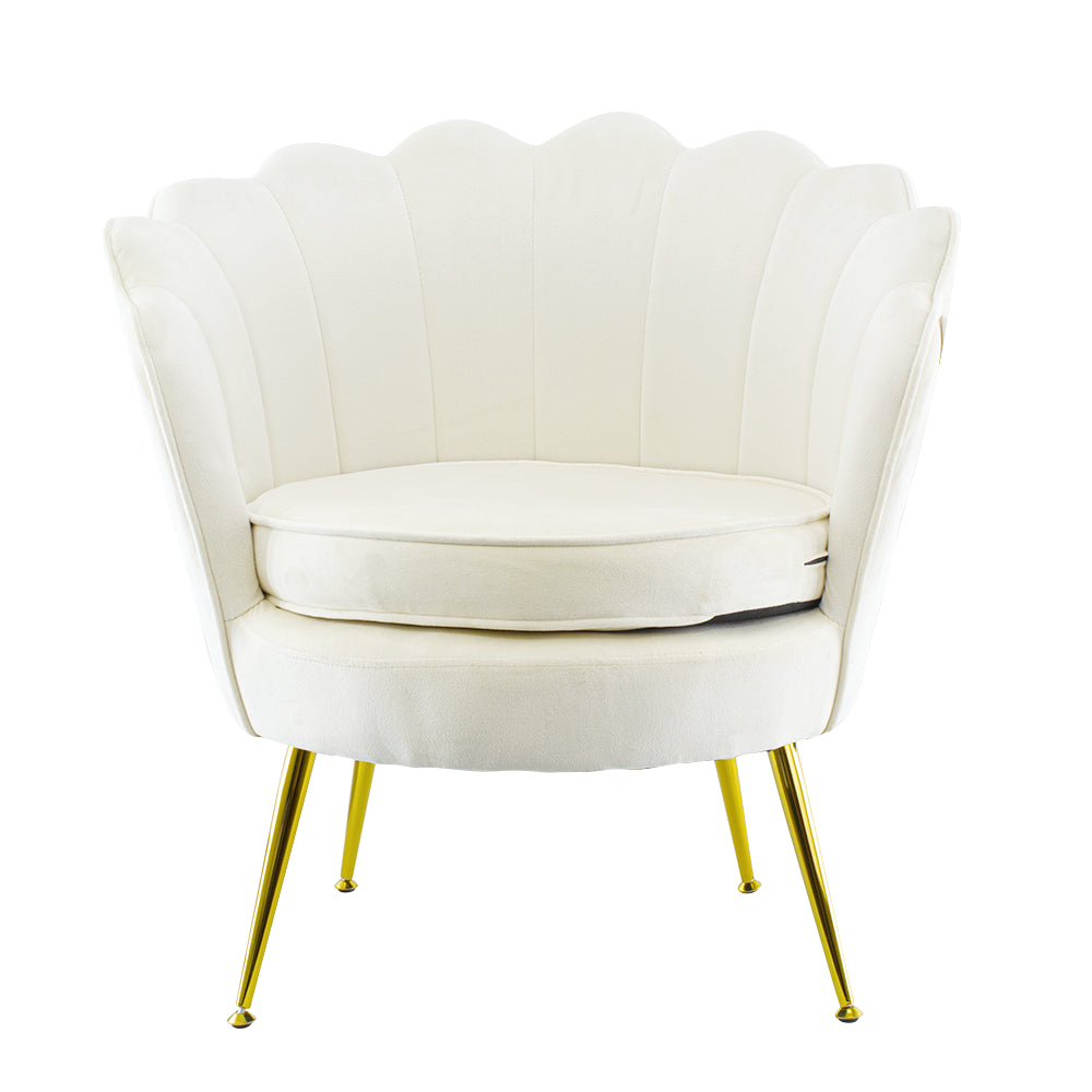 Fauteuil Rembourré avec Dossier Coquille en Velours Beige Pieds Doré