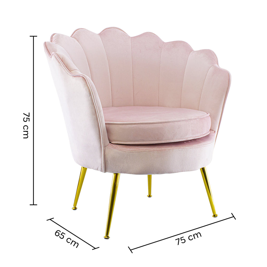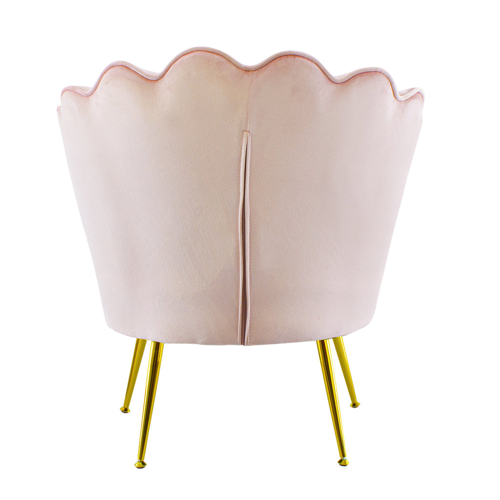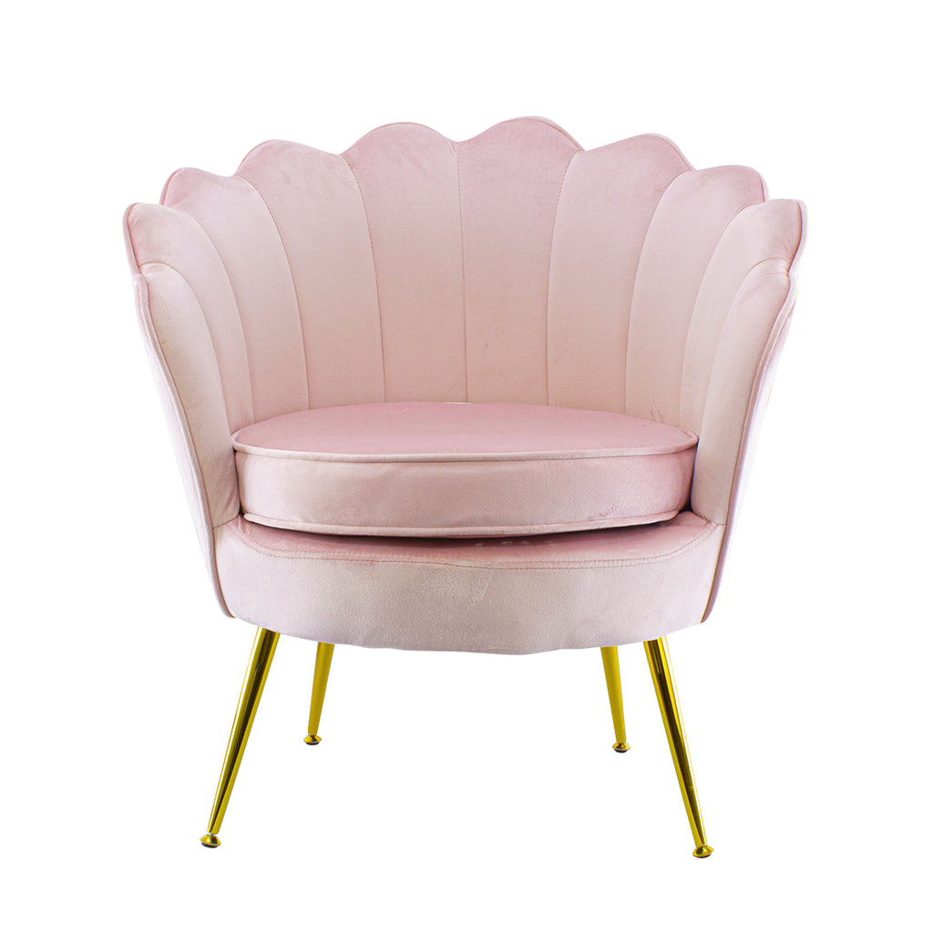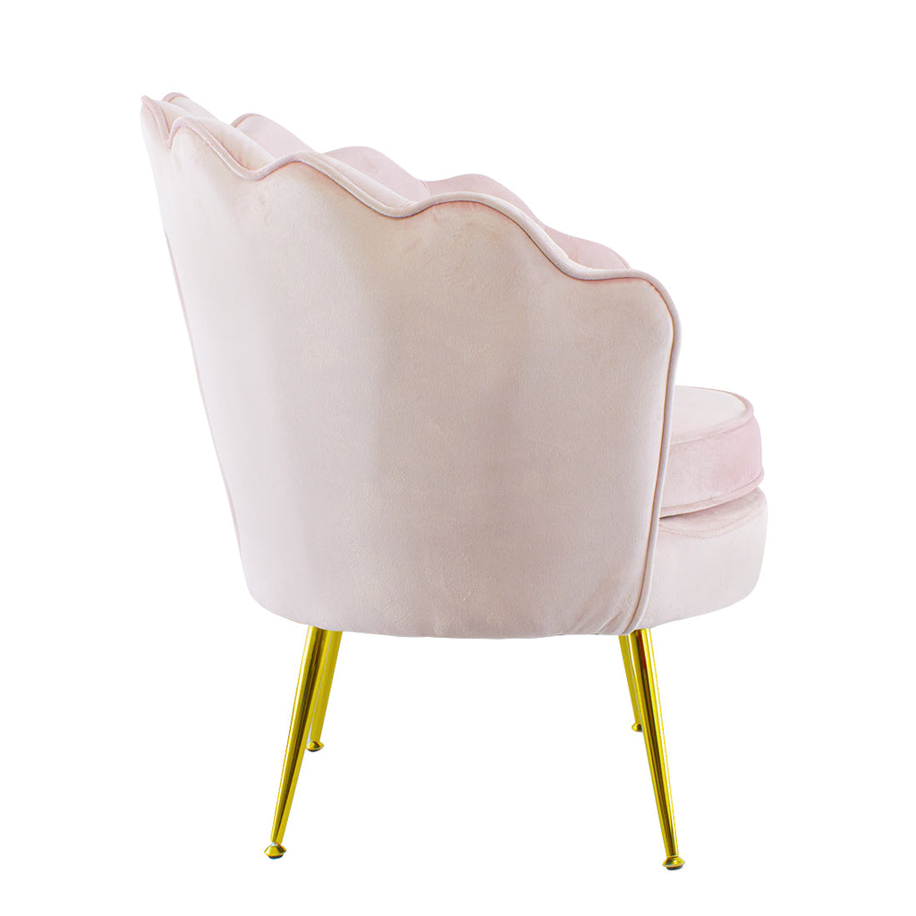 Fauteuil rembourré avec dossier coque en velours et pieds en or rose