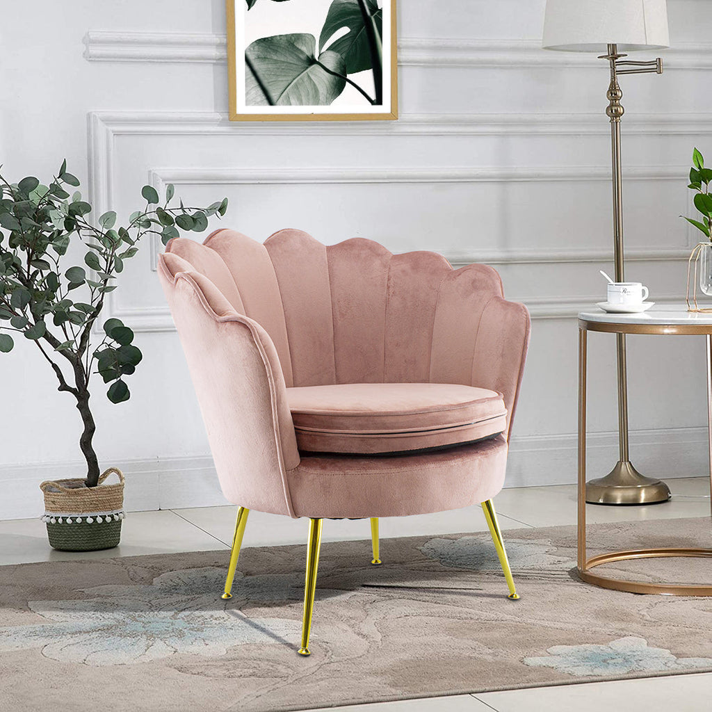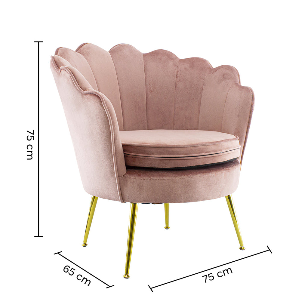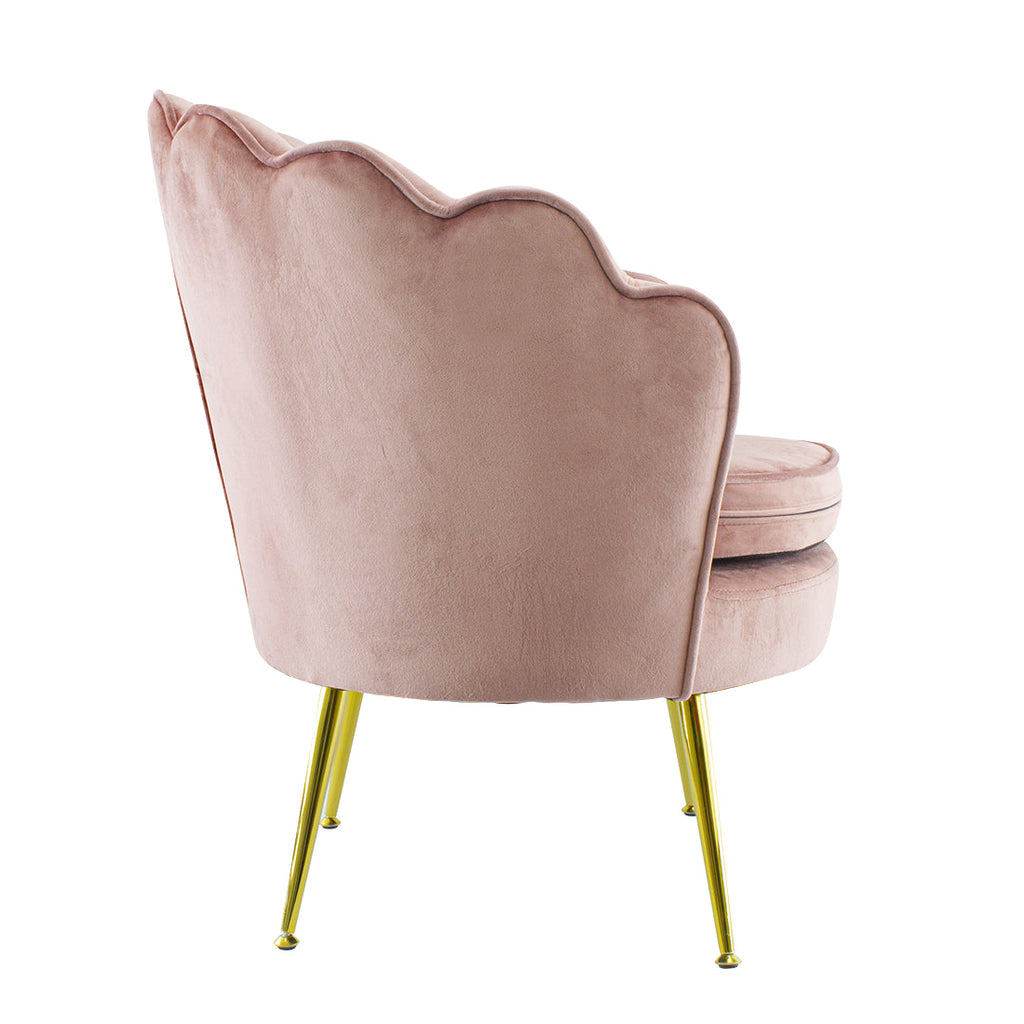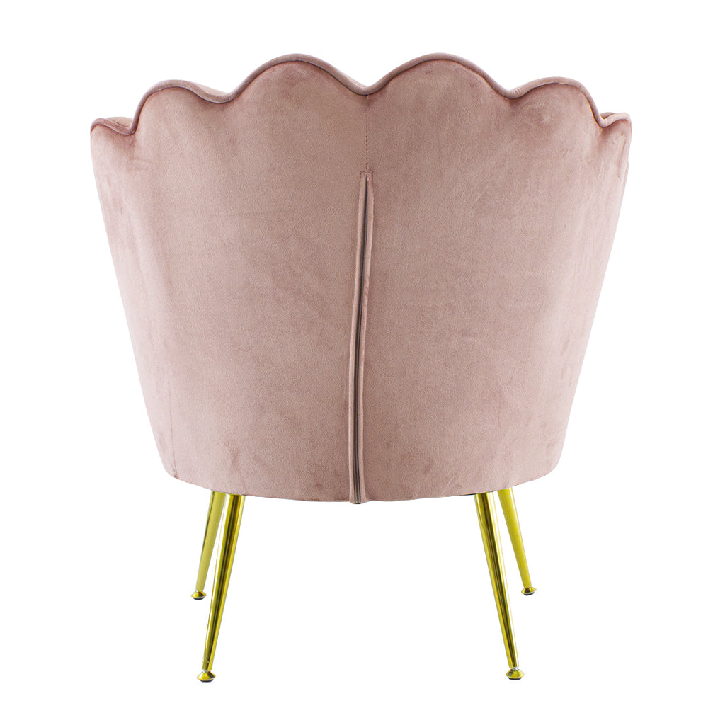 Fauteuil Rembourré Dos Coque en Velours Pieds Or Rose Antique