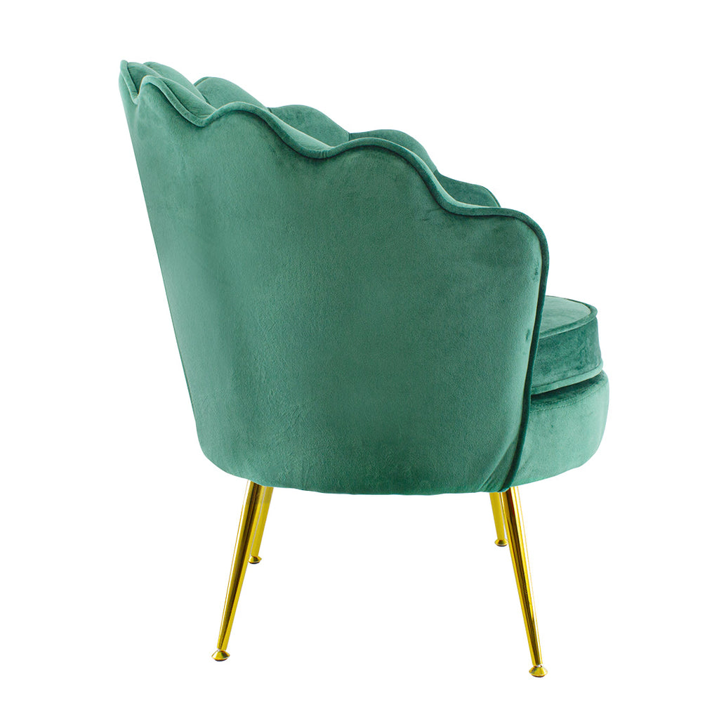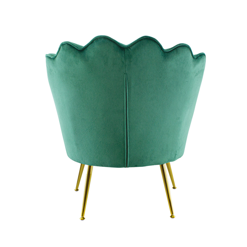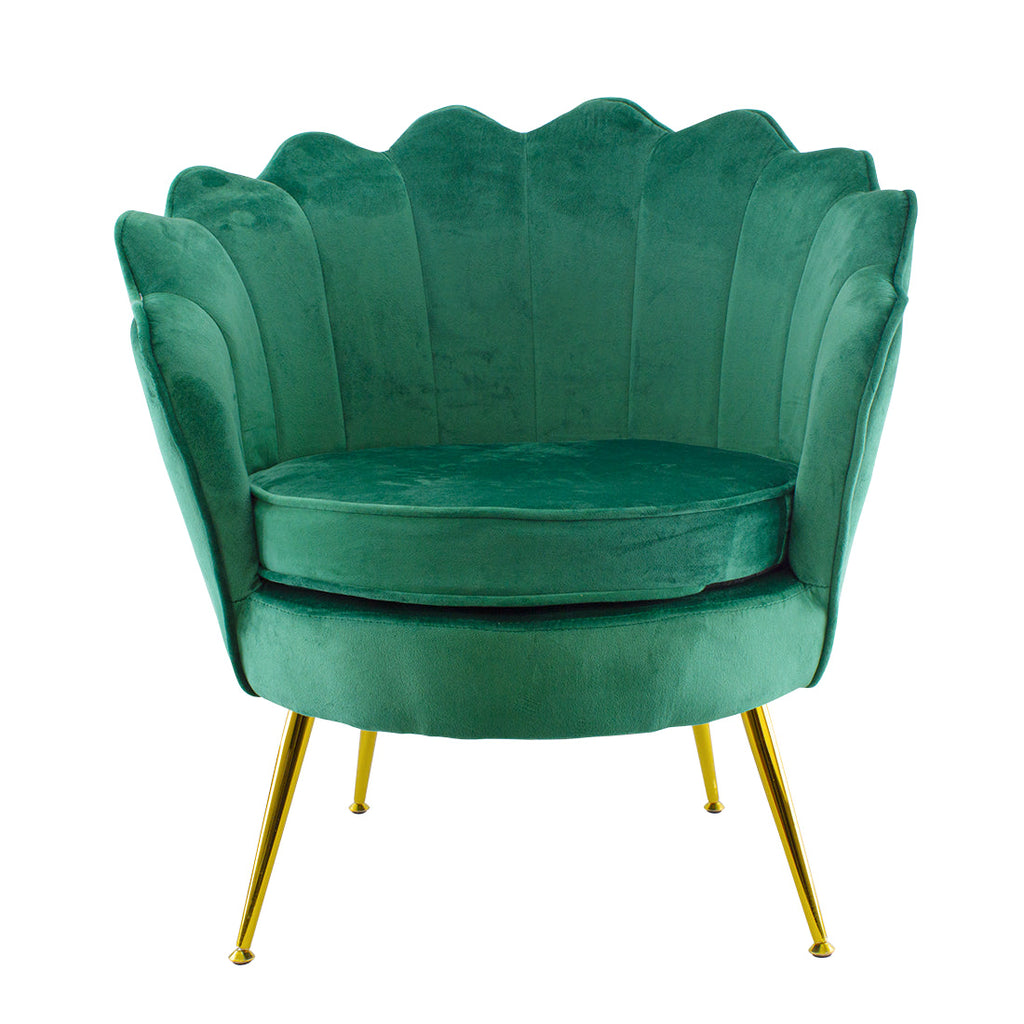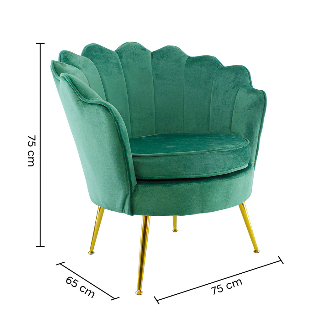 Fauteuil Rembourré avec Dossier Coquille en Velours à Pieds Vert Or