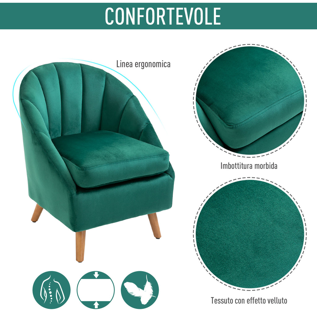 Ce fauteuil est parfait pour apporter une touche de raffinement à votre salon ! Grâce à l'élégant tissu velours et au style intemporel du bois, il s'adapte à tout type de mobilier.