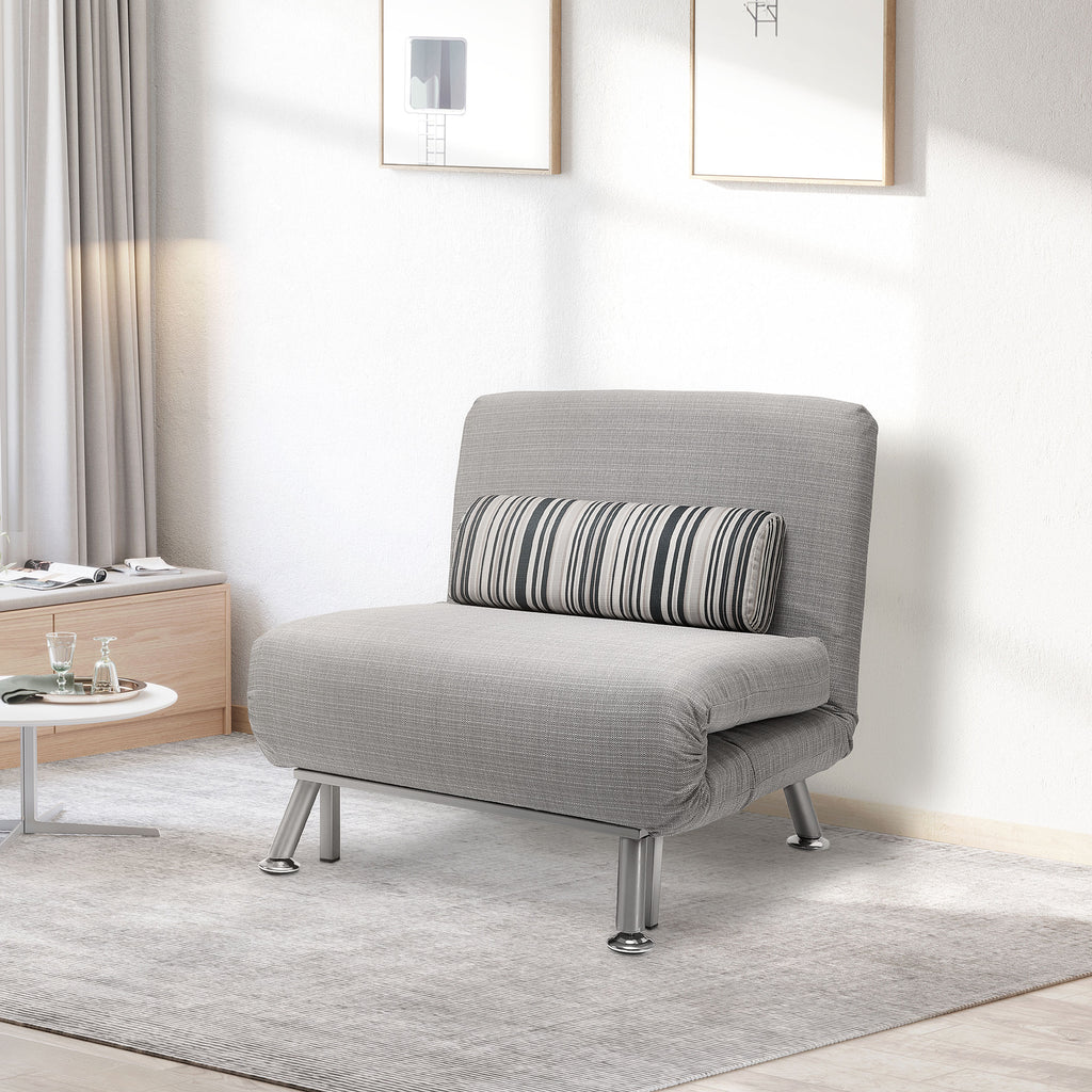Fauteuil lit en fer et coton avec coussin rayé gris, 75x70x75 cm