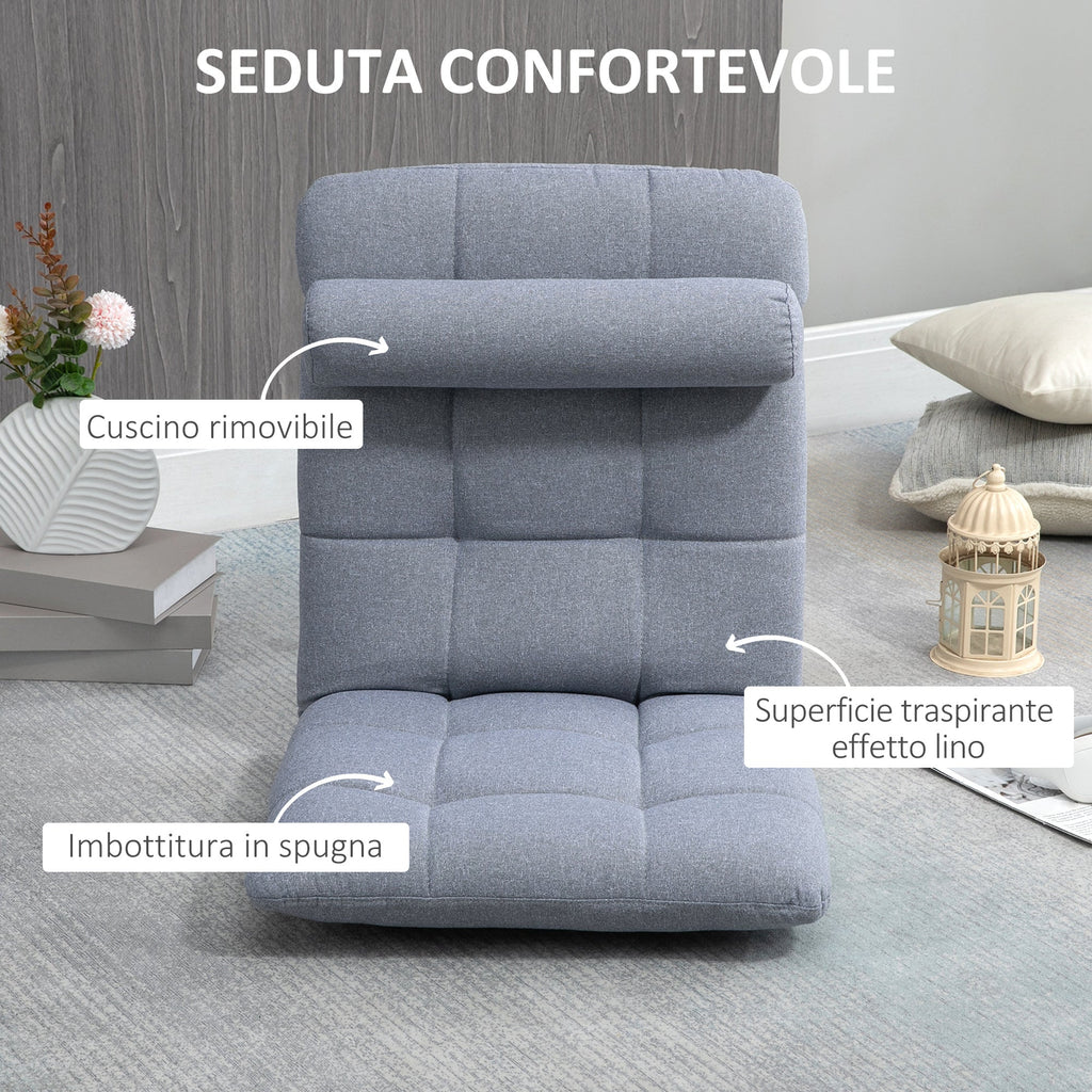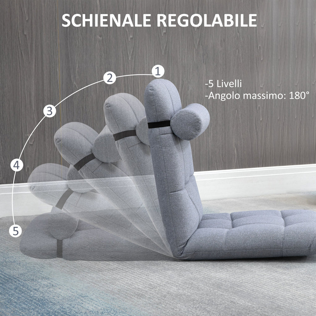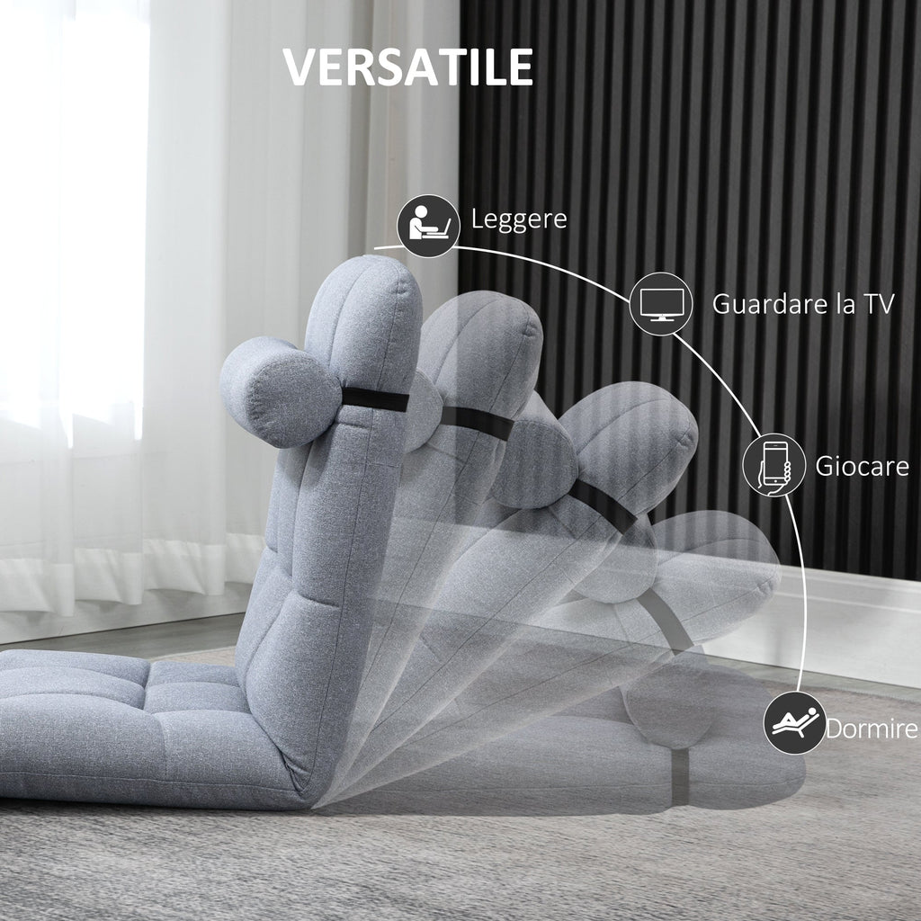 Fauteuil Lit Simple 53x64x60 cm Hauteur Réglable sur 5 Niveaux et Coussin Amovible Gris