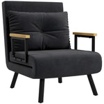 Poltrona Letto Singolo Reclinabile con Cuscino Sfoderabile in Tessuto Effetto Lino Nero