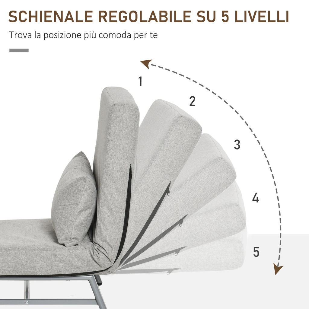 Fauteuil Convertible Lit 1 Place 73x60x81 cm Gris Dossier Inclinable