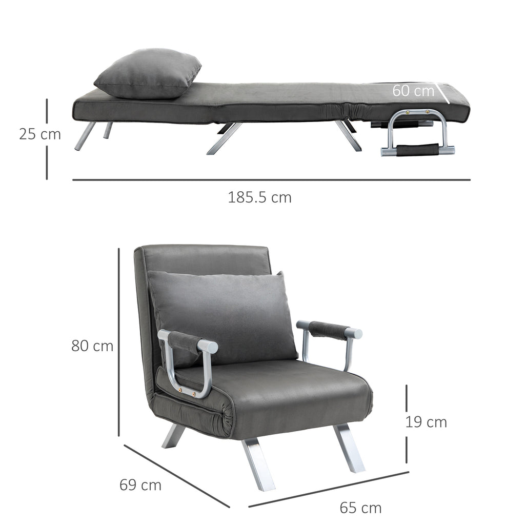 Fauteuil convertible en lit avec revêtement en microfibre gris foncé