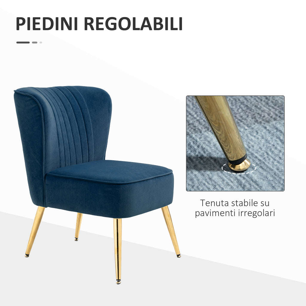 Fauteuil rembourré moderne 56x65,5x82,5 cm en tissu velours bleu