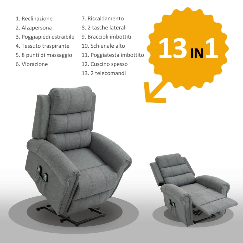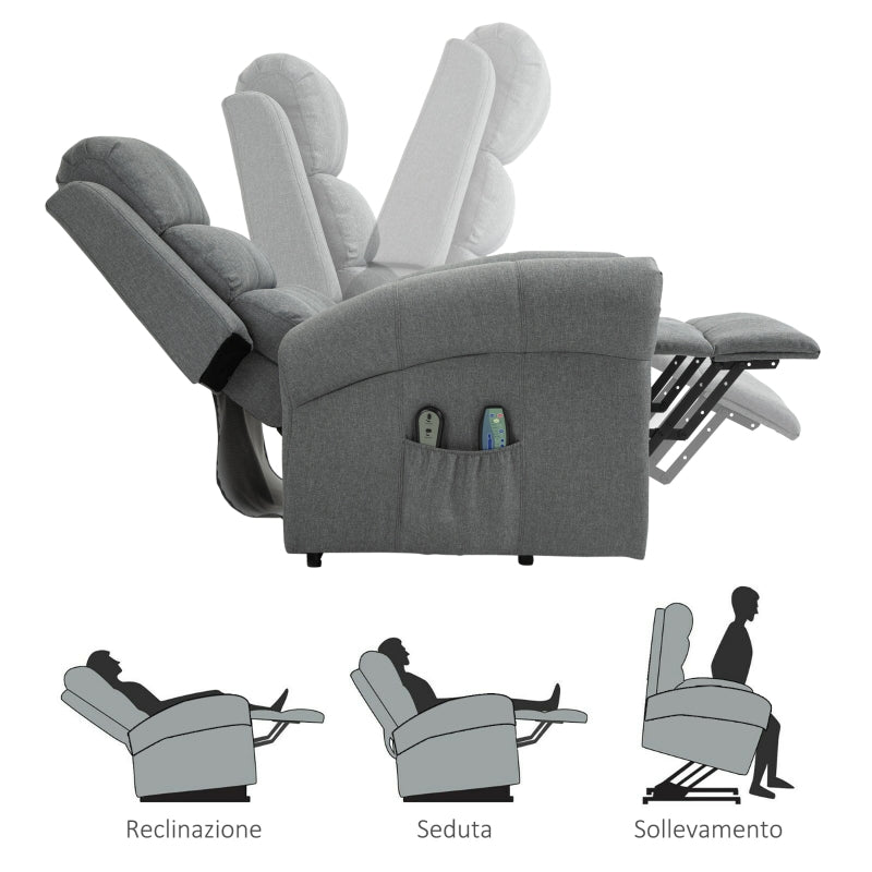 Fauteuil Relax pour Lever et Masser Chauffant en Tissu de Lin Gris