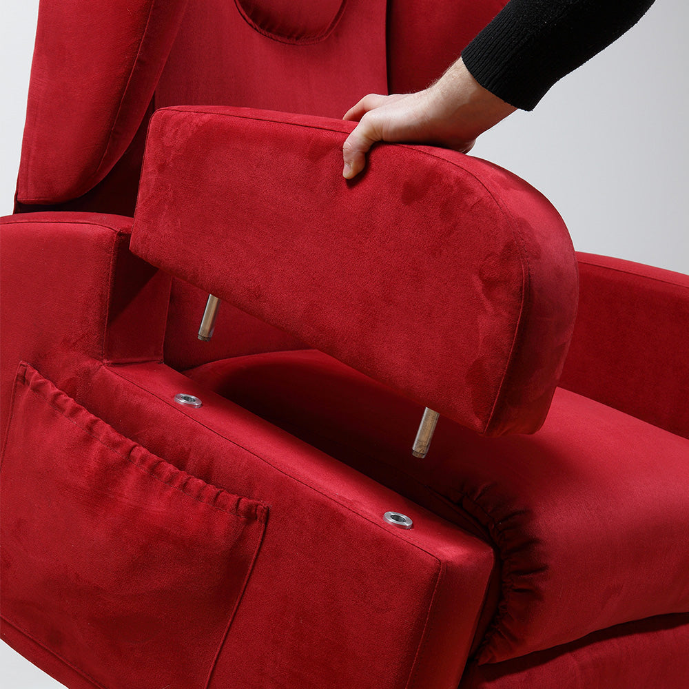 - Détente : positionnement du dossier et du repose-jambes, grâce aux 2 moteurs séparés du fauteuil, il permet de régler l'inclinaison du dossier et du repose-jambes de manière totalement indépendante, pour plus de confort