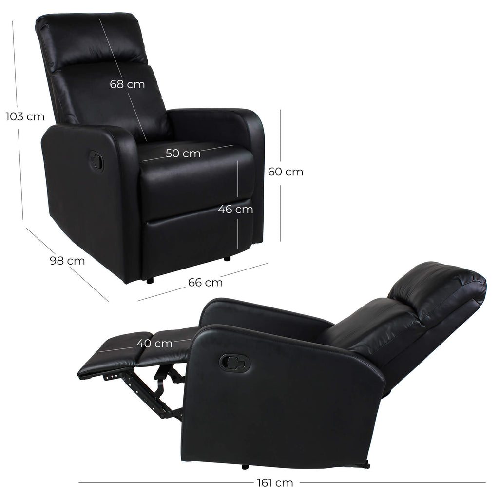 Fauteuil Relax Manuel Inclinable en Simili Cuir 66x103x98 cm Vandi Saoma Noir