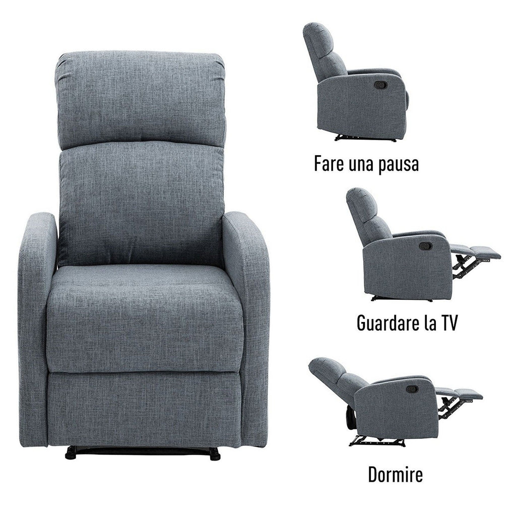 Fauteuil de relaxation manuel modèle en tissu moderne et élégant, un produit unique et irremplaçable avec un dossier enveloppant pour une assise composée, confortable et détendue.