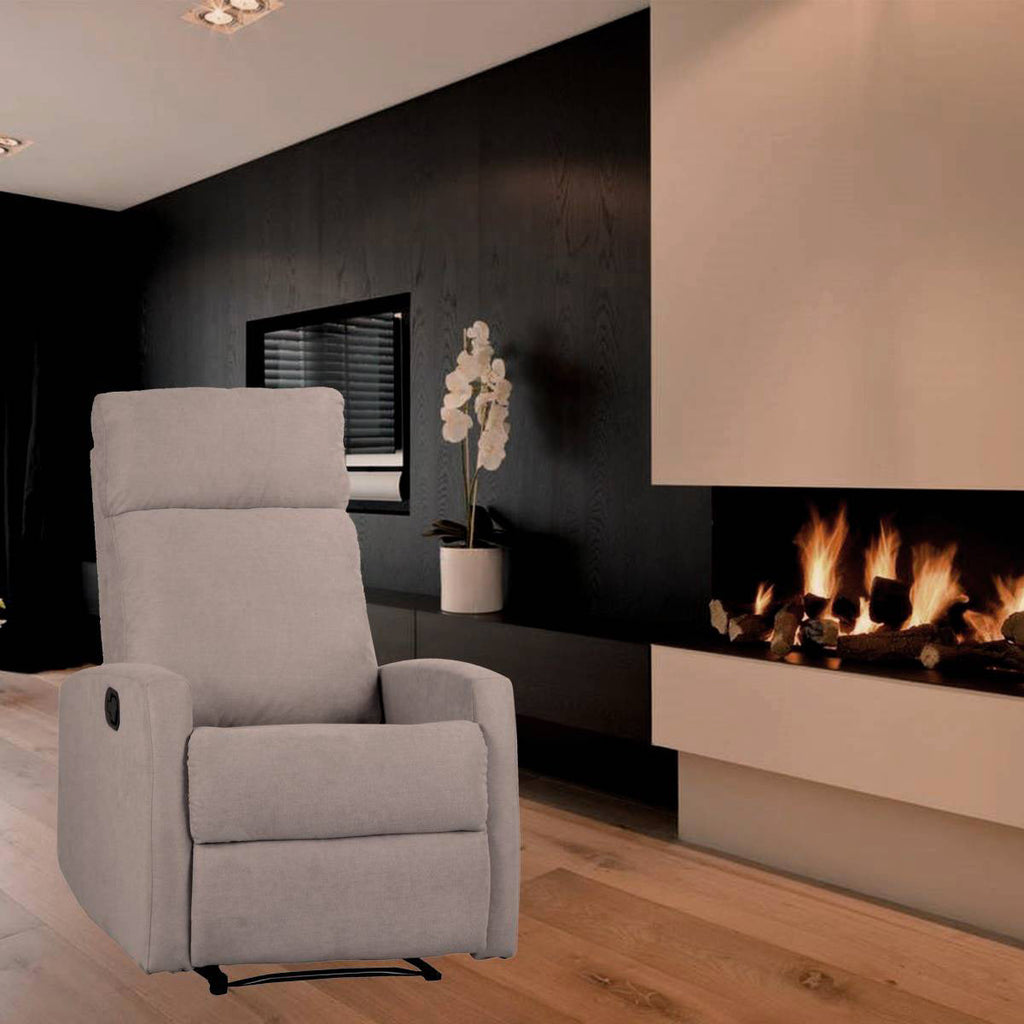 Fauteuil de relaxation manuel modèle en tissu moderne et élégant, un produit unique et irremplaçable avec un dossier enveloppant pour une assise composée, confortable et détendue.