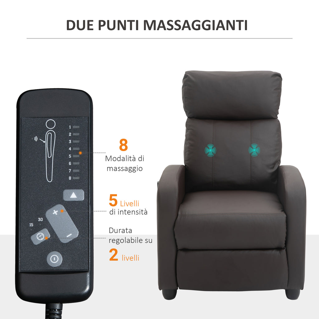 Fauteuil de massage Relax 68x88x98 cm avec télécommande en similicuir marron