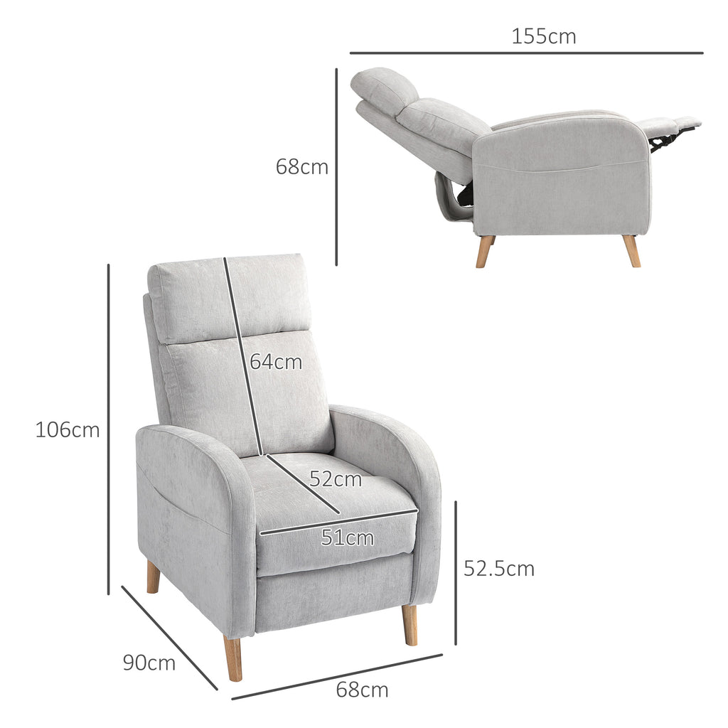Poltrona Relax Reclinabile 150° con Poggiapiedi 68x90x106 cm in Tessuto Effetto Lino Grigio Chiaro
