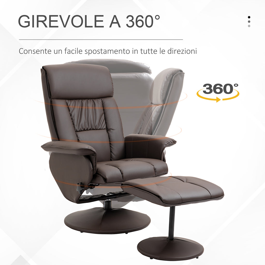 Fauteuil inclinable Relax 80x69x110 cm avec assise pivotante et repose-pieds ottoman marron