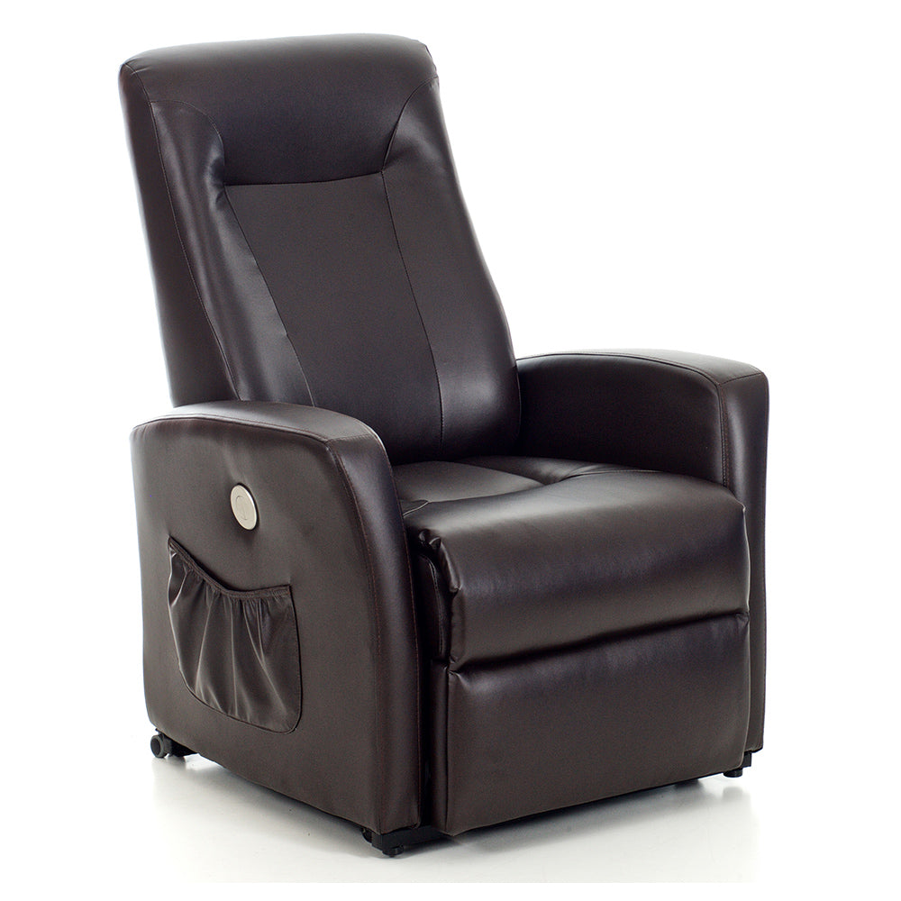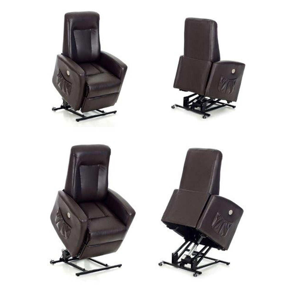 Fauteuil équipé d'un système de levage ( LIFT ) avec moteur électrique pour le réglage synchronisé du dossier et du repose-pieds pouvant être actionné avec un panneau latéral à boutons-poussoirs.