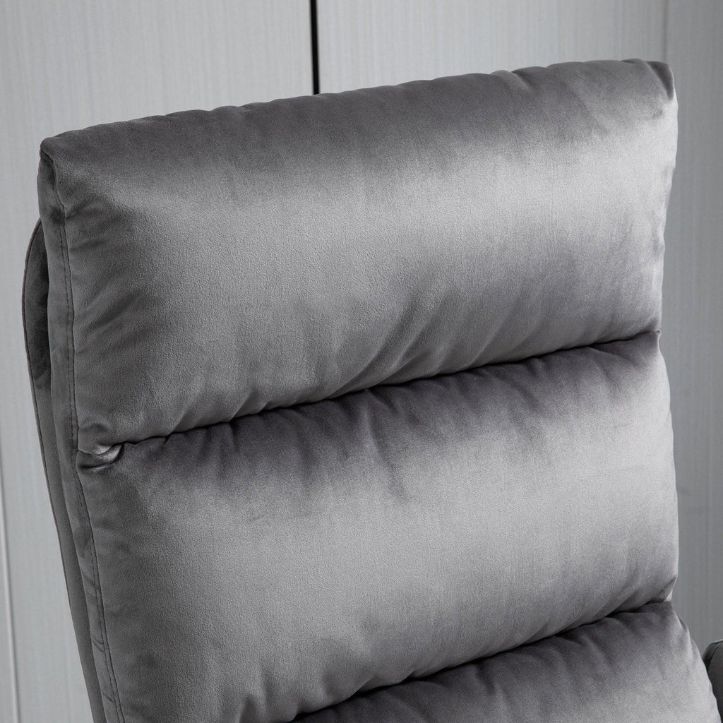 Ne vous contentez pas de n'importe quel fauteuil, optez pour le double de confort avec l'ensemble 2 pièces inclinable et repose-pieds. Le rembourrage épais offre une sensation de confort et la housse effet velours lui confère une douceur agréable. Vous pouvez vous balancer d'avant en arrière et reposer vos jambes sur le repose-pieds pour vous détendre quand vous le souhaitez.