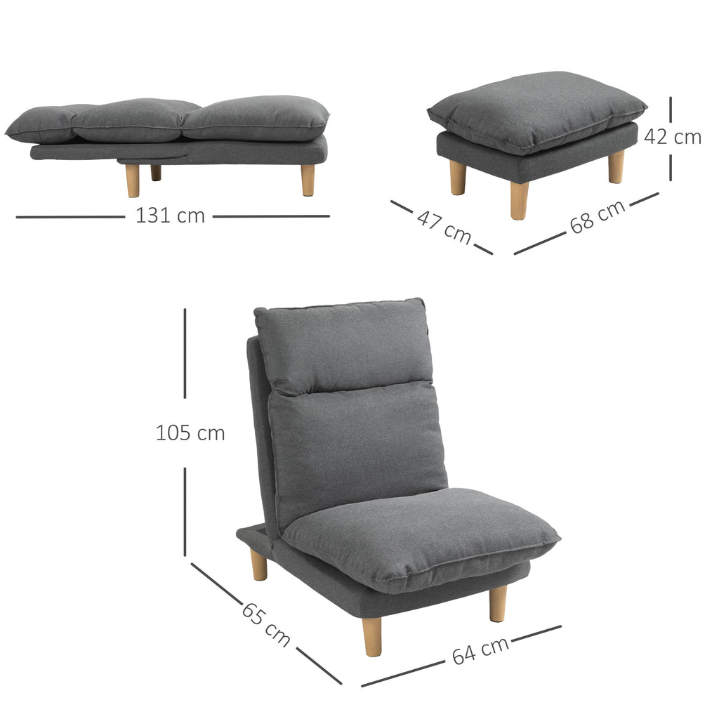 Fauteuil inclinable Relax avec repose-pieds Puof en tissu gris