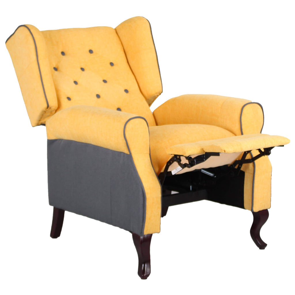 C'est un produit unique et irremplaçable avec un dossier enveloppant et une assise composée, confortable et détendue, avec une légère pression sur les accoudoirs, le dossier s'abaisse doucement en synchronisation avec le repose-pieds. Revêtement en tissu de qualité facilement lavable, structure interne en bois solide qui rend le fauteuil robuste et résistant à tout poids. Pions en hêtre.