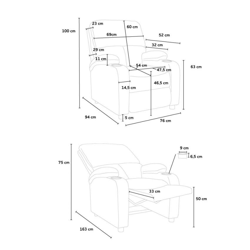 Les grands rangements situés aux extrémités de chaque accoudoir permettent de ranger boissons, nourriture ou objets du quotidien, comme la télécommande, pour toujours avoir quelque chose à portée de main sans avoir à se lever. De plus, l'inclinaison du dossier et l'élévation du pied de lit peuvent être facilement ajustées à l'aide d'un mécanisme manuel.
