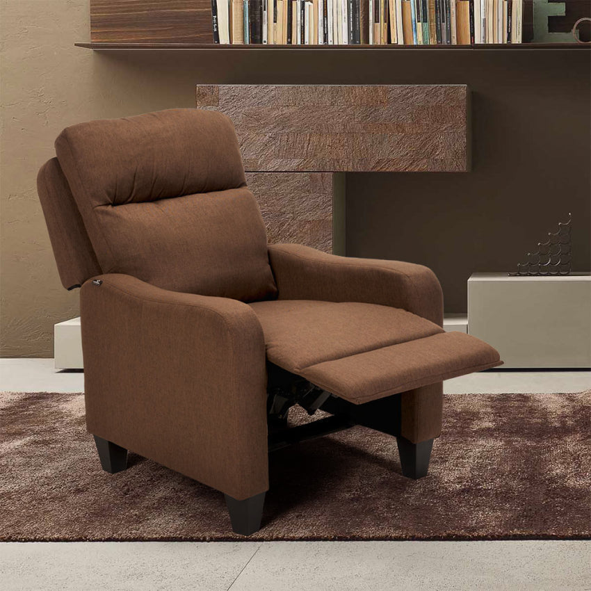 Fauteuil relax inclinable manuel 106x74x74 cm en tissu marron