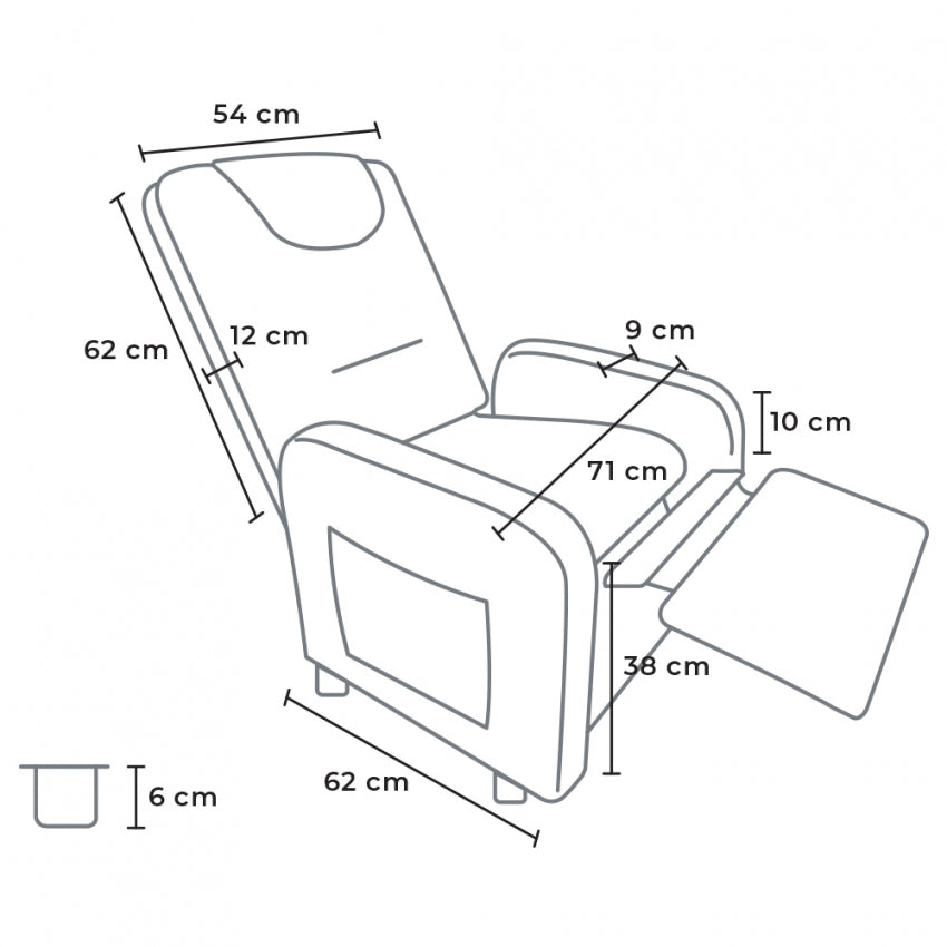 Le fauteuil de relaxation inclinable Anna de la célèbre ligne de fauteuils Le Roi du Relax a été fabriqué exclusivement avec des matériaux de premier choix, tels que le cadre robuste, les mécanismes de haute précision, le rembourrage en tissu doux, le rembourrage confortable en polyuréthane et l'appui-tête intégré pour offrir vous tout le repos dont vous avez besoin chaque jour. Contrairement aux modèles électriques classiques, le fauteuil de relaxation Anna ne nécessite aucune électricité ni activation via les poignées latérales pour vous aider à maintenir une posture anatomiquement correcte. Que ce soit pour lire un journal, pour une sieste ou pour regarder tranquillement la télévision, pour incliner le dossier, il vous suffit d'appliquer une légère pression avec votre dos et le fauteuil soulèvera également un pied de lit confortable en même temps, afin que vous puissiez avoir en quelques instants et sans le moindre effort, un lit confortable pour se détendre pleinement, passer de la position de lecture à la position de repos rapidement et facilement. En plus du mécanisme manuel pratique et intuitif qui vous permet de choisir le confort que vous désirez le plus, le fauteuil relax Anna est également équipé d'une grande poche latérale pour ranger et toujours avoir à portée de main les télécommandes, magazines ou objets que vous utilisez. souvent à la maison.