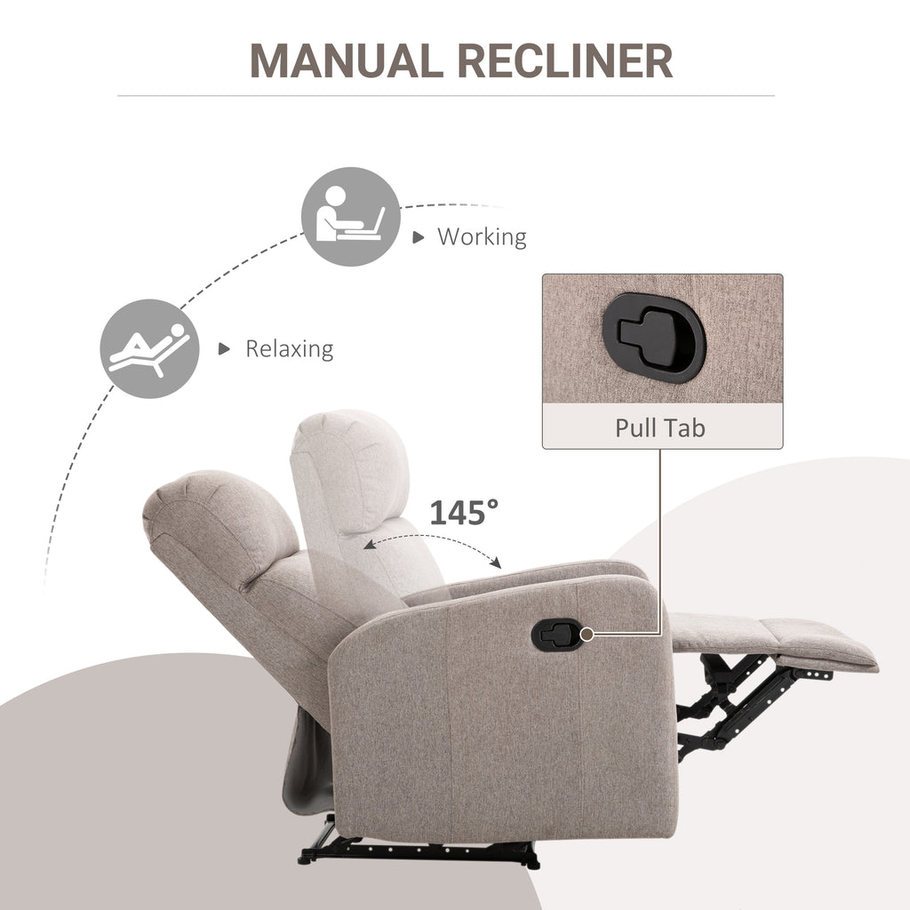 Poltrona Relax Reclinabile Manuale 66x83x107 cm in Tessuto Effetto Lino Grigia