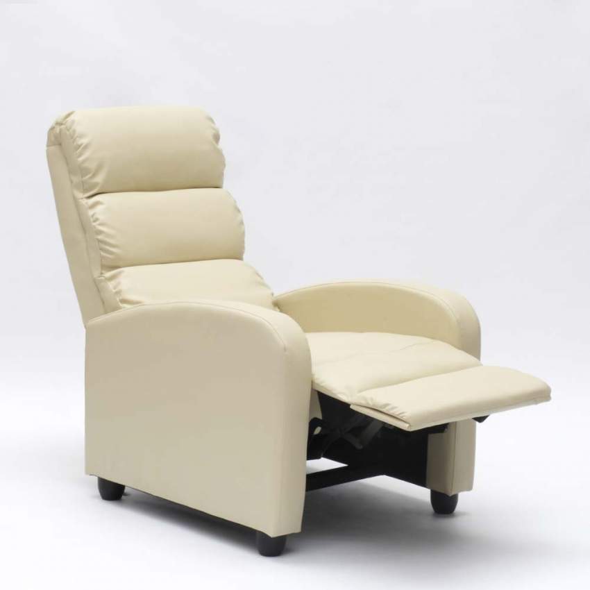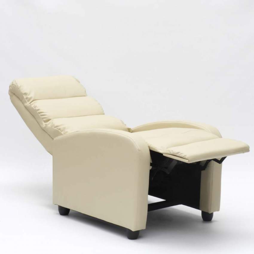 Fauteuil relax inclinable manuel 69x91x102 cm en simili cuir beige