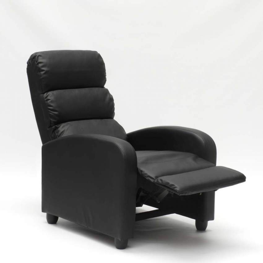 Fauteuil relax inclinable manuel 69x91x102 cm en simili cuir noir