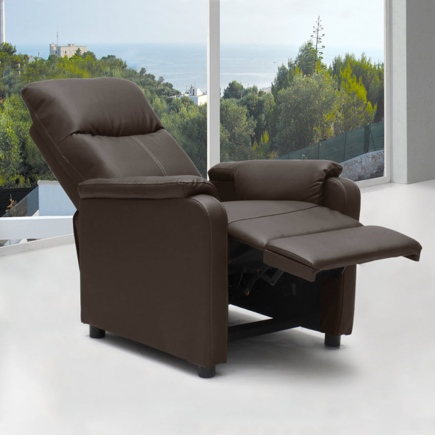 Fauteuil relax inclinable manuel 75x95x103 cm en simili cuir marron foncé