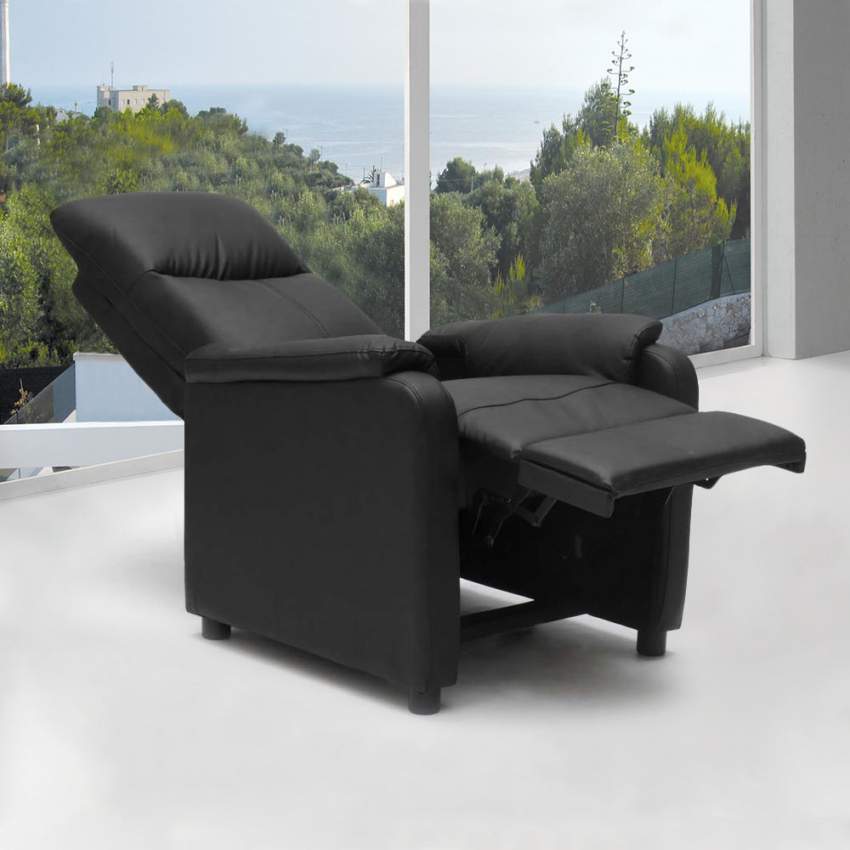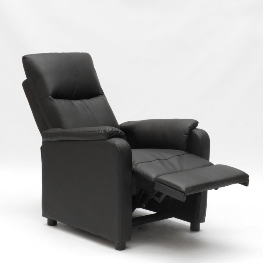 Fauteuil relax inclinable manuel 75x95x103 cm en simili cuir noir