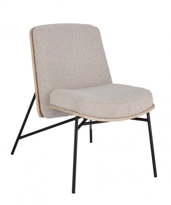Cette structure est réalisée en contreplaqué, un matériau durable et de haute qualité. Les pieds sont fabriqués en acier thermolaqué, ce qui lui confère une finition robuste et durable. Le réglage du rembourrage en mousse de polyuréthane assure un confort maximal. Le revêtement en polyester et acrylique, à effet bouclé, donne un look élégant et moderne. Les pieds nécessitent un assemblage, assurant une plus grande stabilité et sécurité.