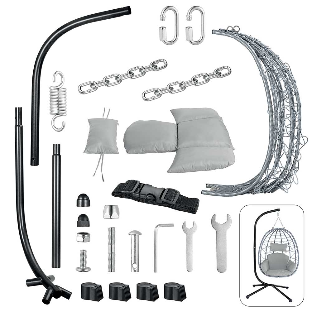 Poltrona Sospesa Giardino Sedia Dondolo Amaca Pensile Rannat e Metallo Grigio